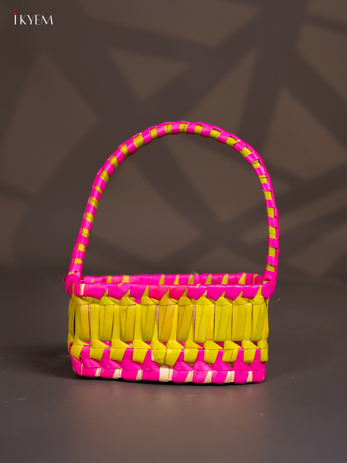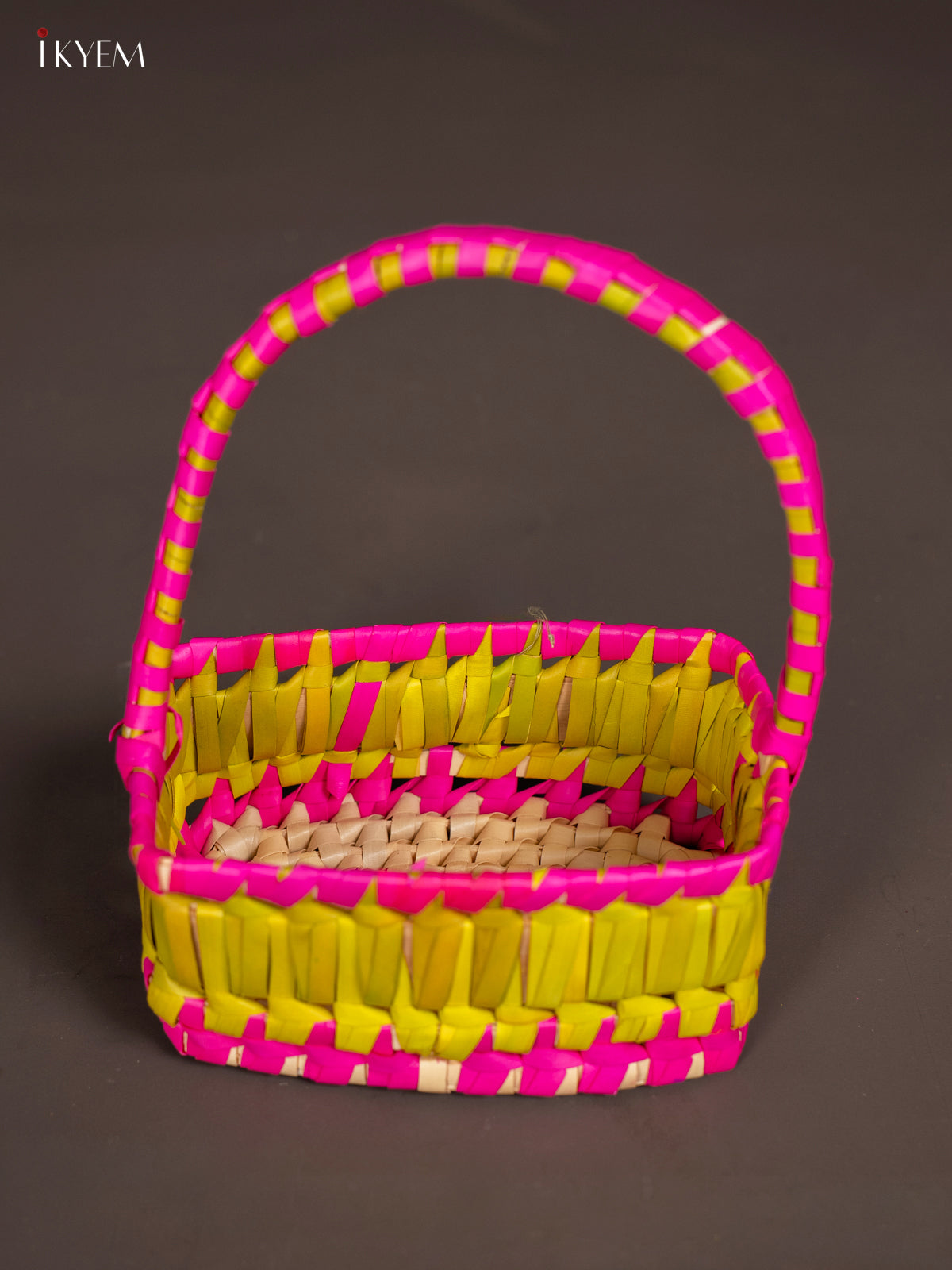 - This Hand Woven Multi-Coloured Palm Leaf Basket is a beautiful blend of traditional craftsmanship and eco-friendly design.