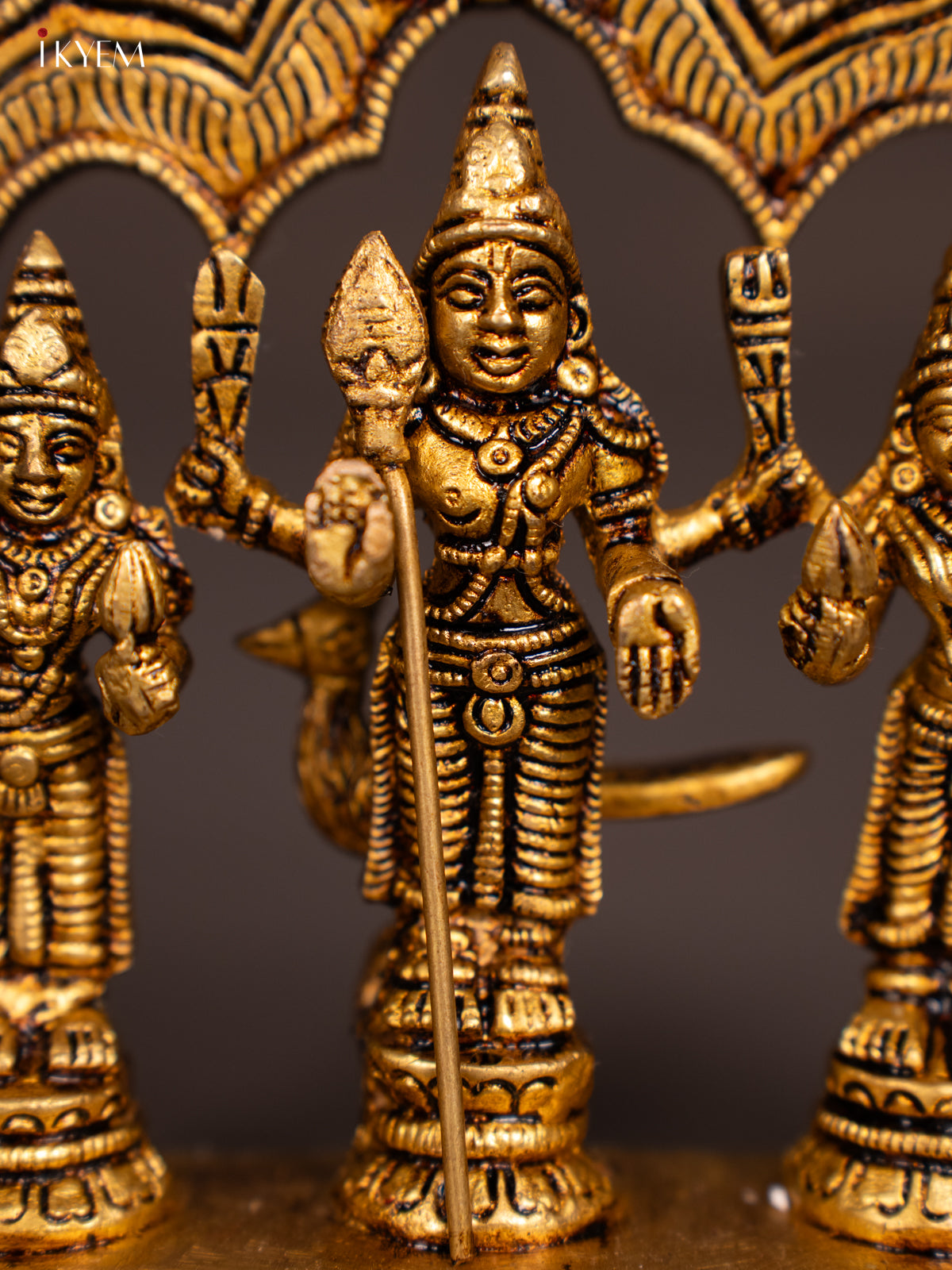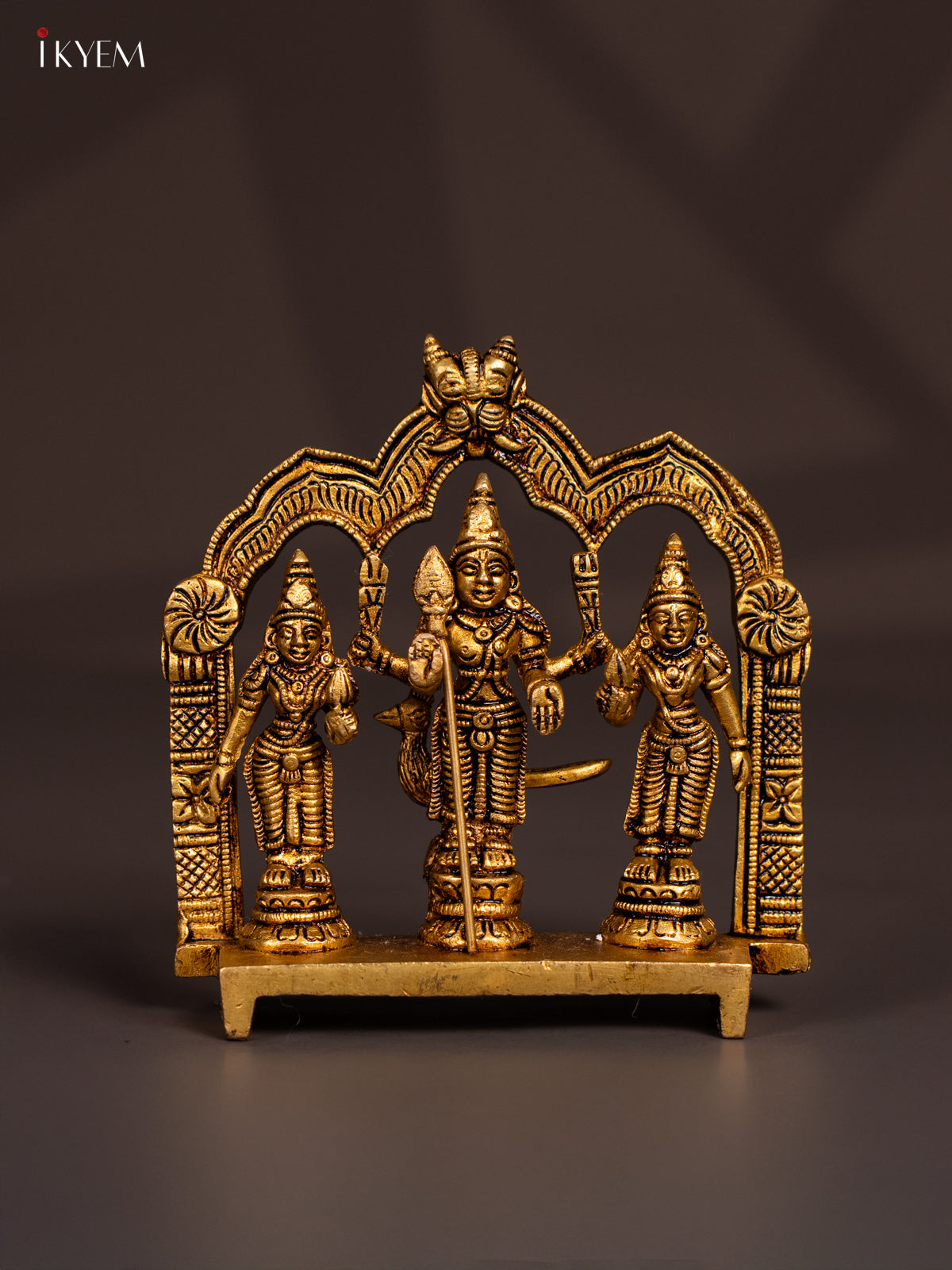 Elevate your home’s spiritual ambience with the Brass Murugan-Valli-Deivannai Idol (H 5.5″ ×L 5″ ×B 1.5″, 840 g). Crafted with traditional artistry, this divine idol adds an auspicious presence to your pooja room, altar, or living space.