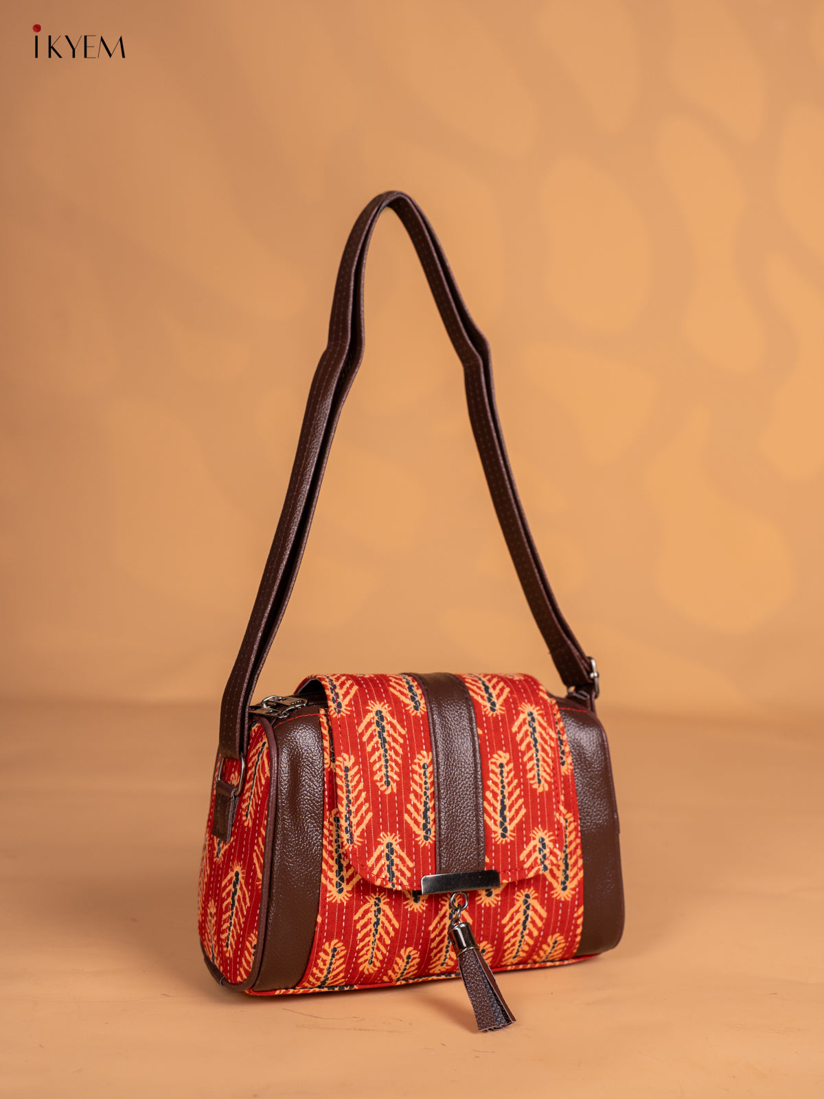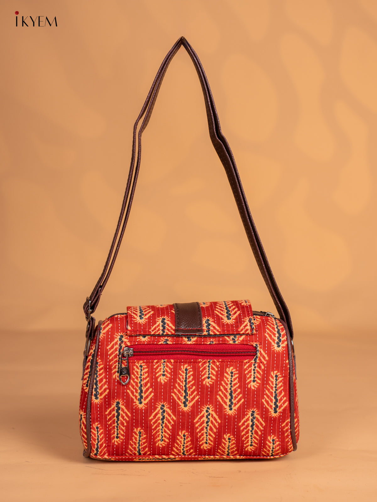 Ajrakh Printed Flap Sling Bag - Red - KN05137