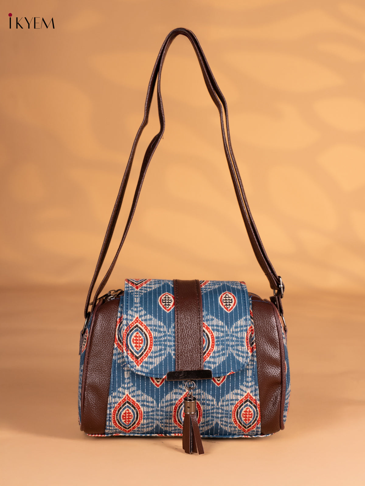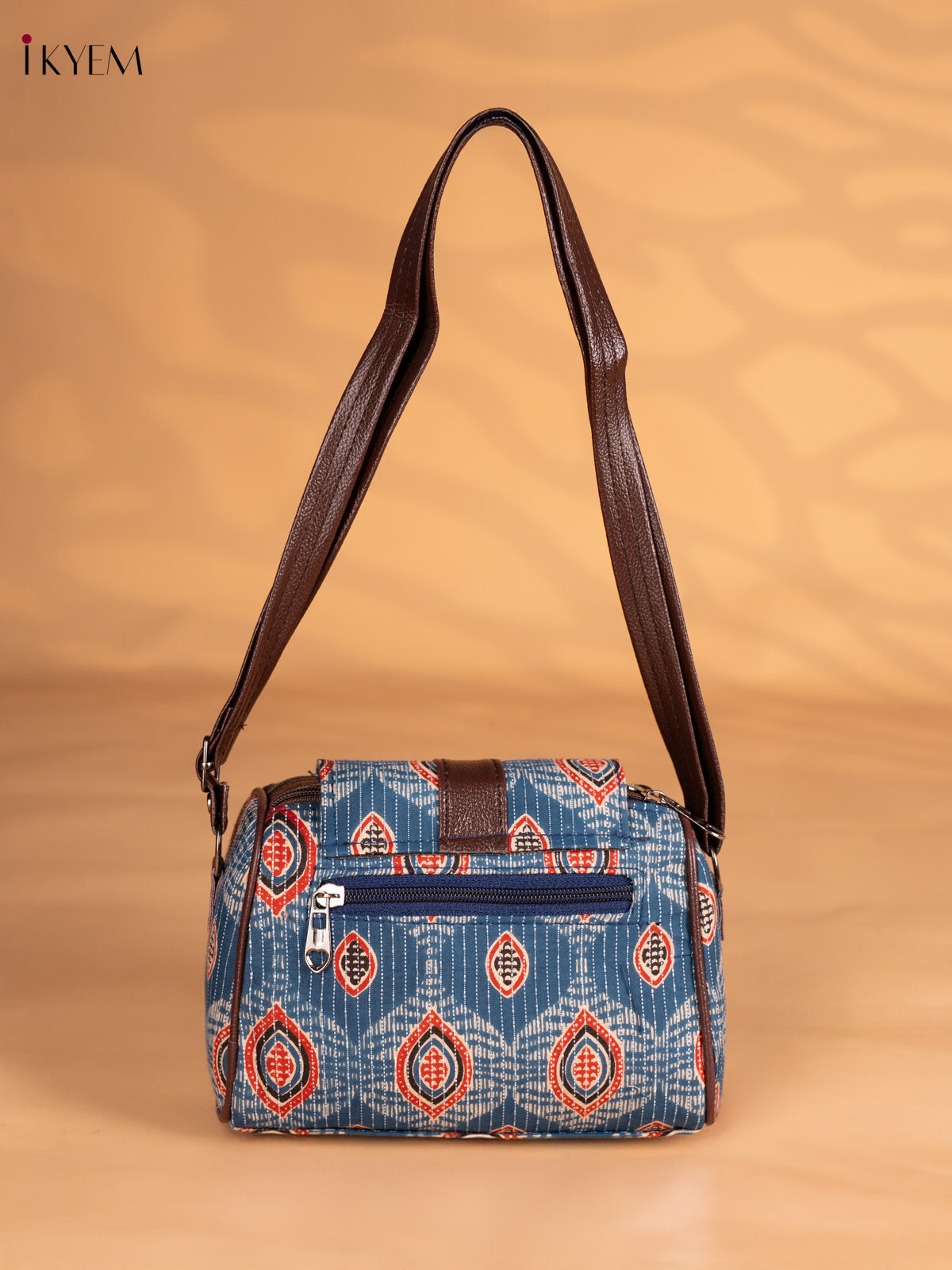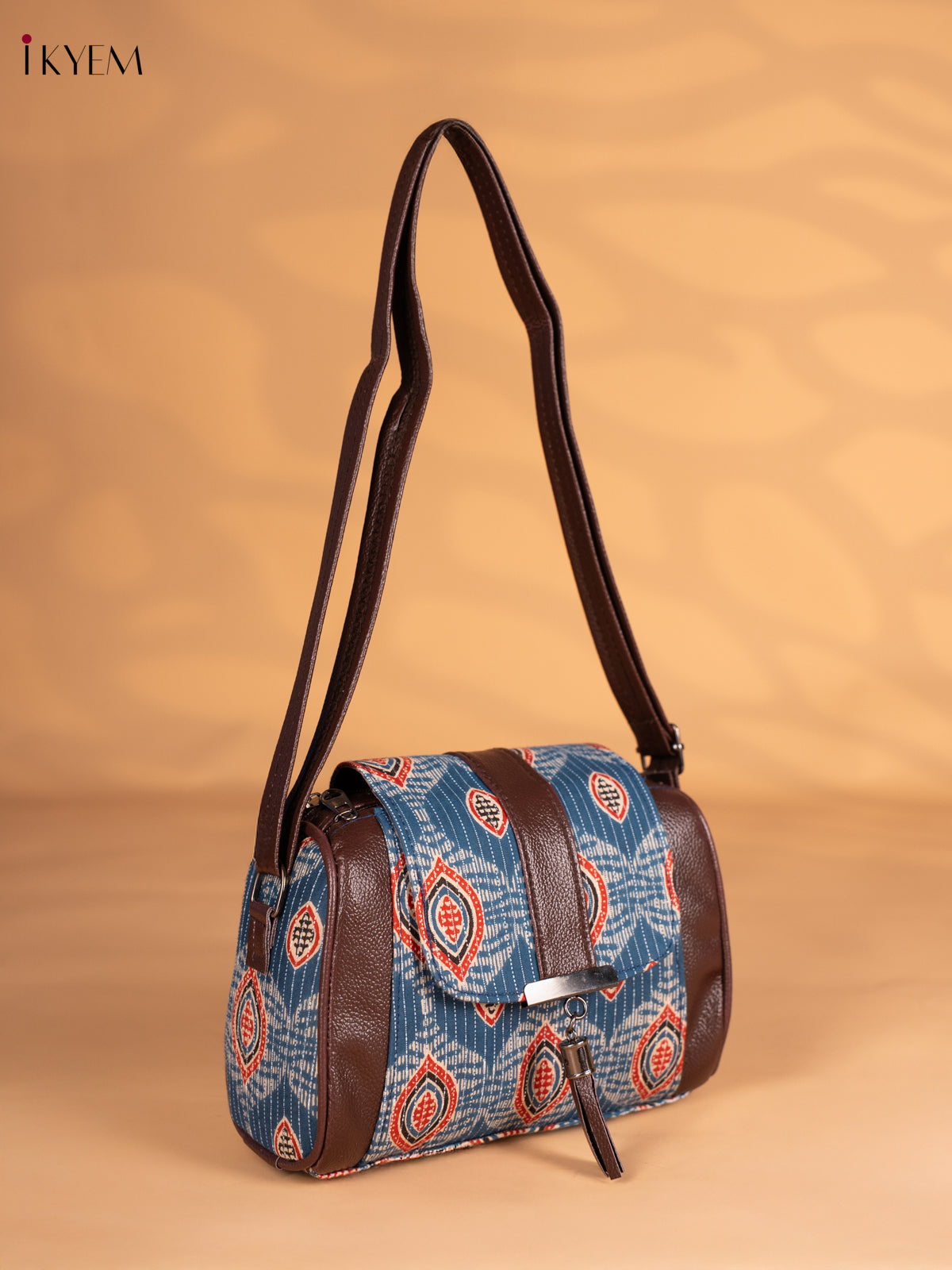 Ajrakh Printed Flap Sling Bag - Blue - KN05138
