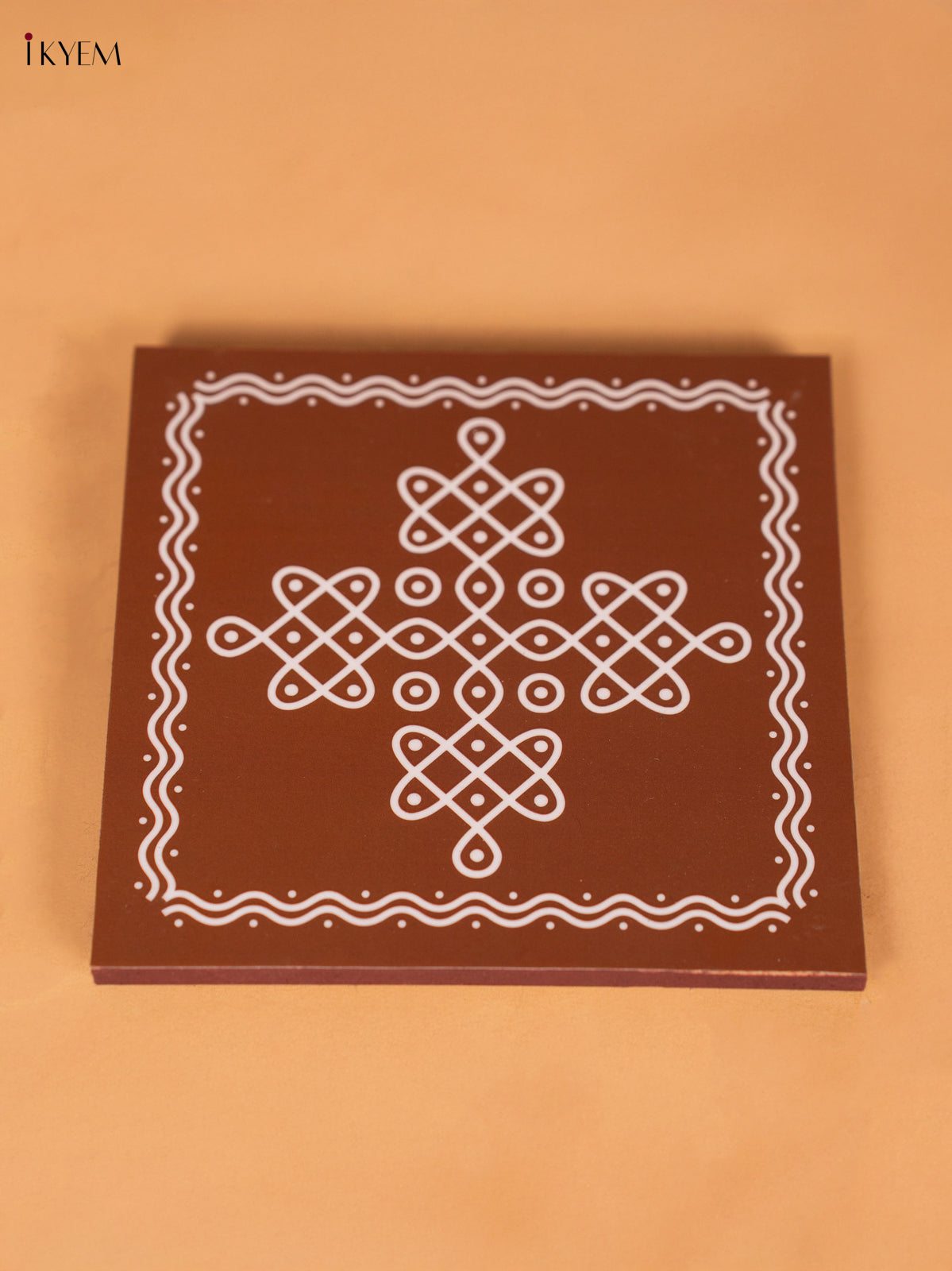 Sikku Kolam Wooden Square Manai - (6x6) Inch - Coffee brown - KN12119