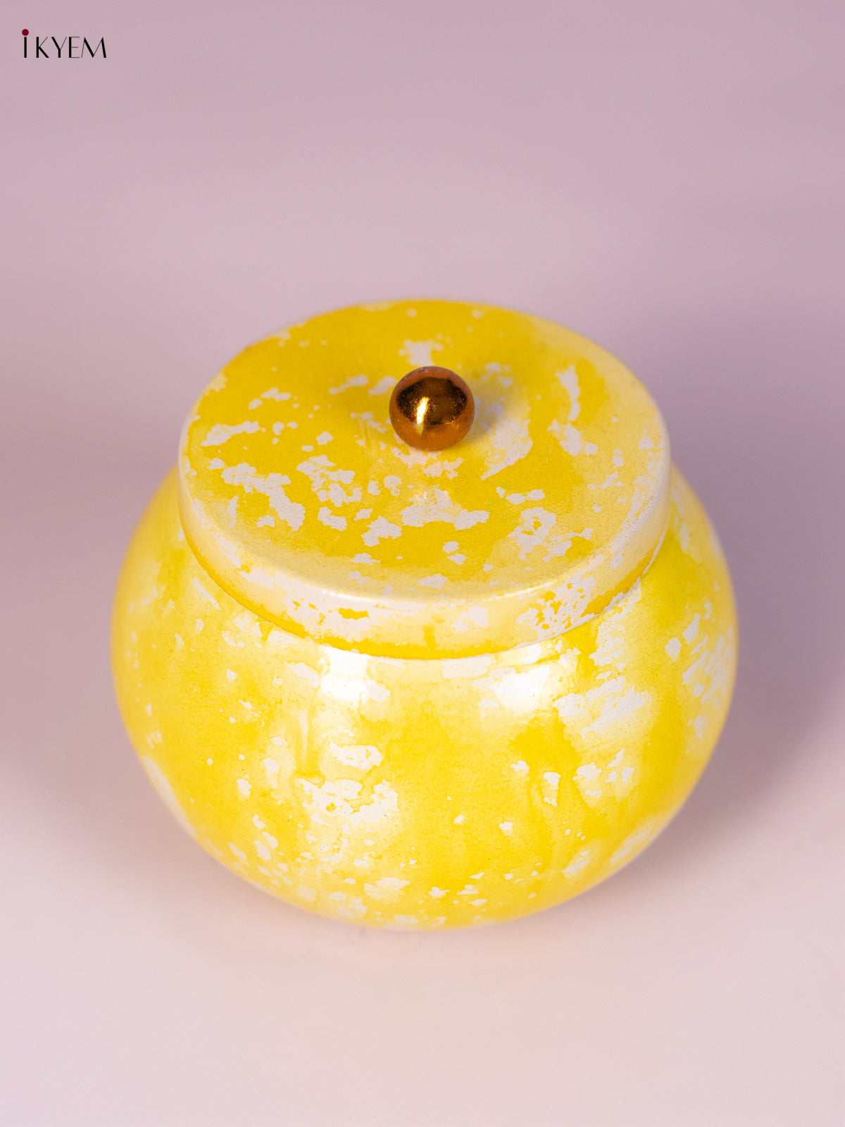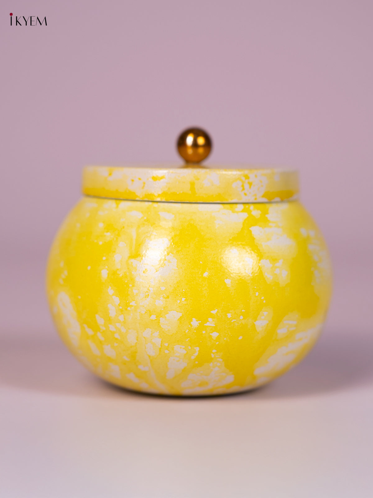 Yellow Hand-Painted Metal Nuts Jar - 3.5 Inches - KN22115