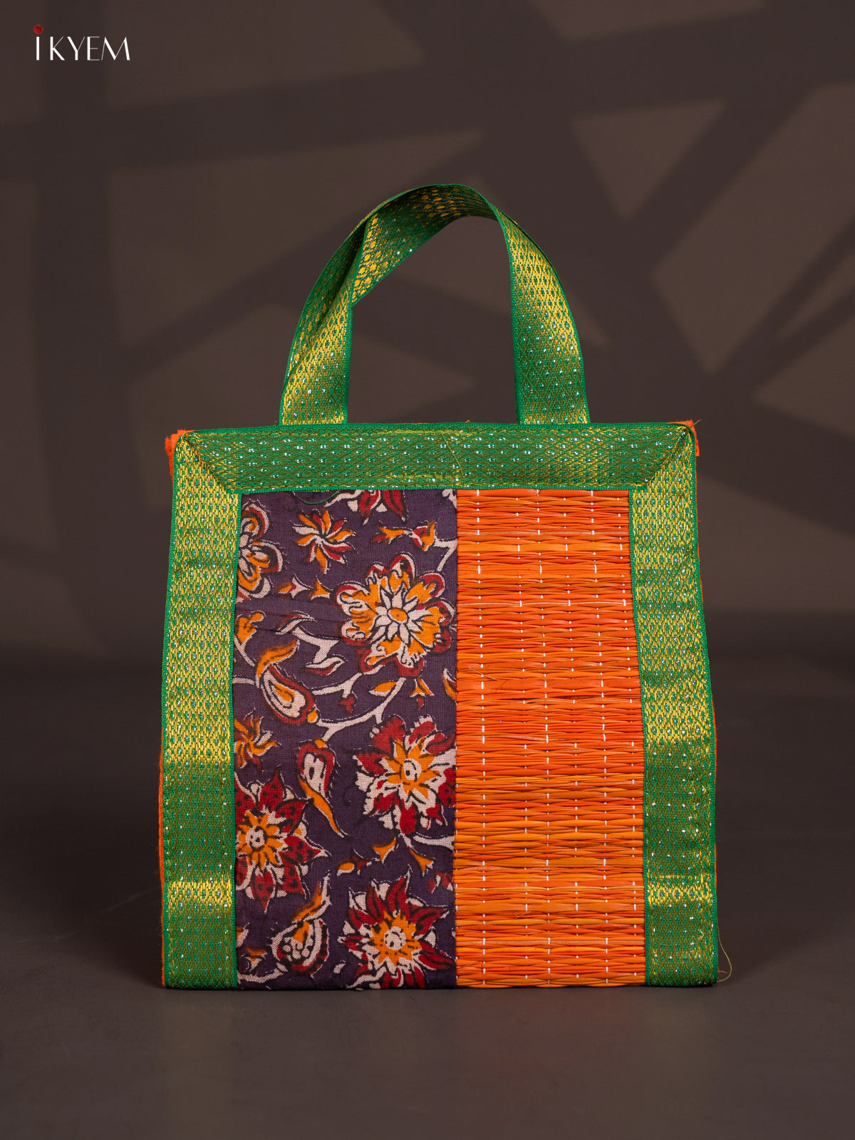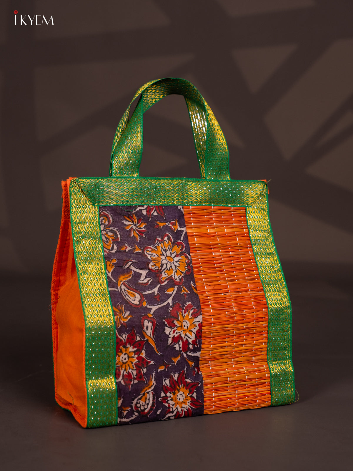 Discover this handcrafted “Korai Bag With Zari – Flower Design” — sized at 9 inches (H) × 8 inches (W) × 4 inches (D) and weighing 110 g. Crafted from traditional korai‑grass with zari‑border detailing, this lightweight bag combines rustic charm with festive elegance.