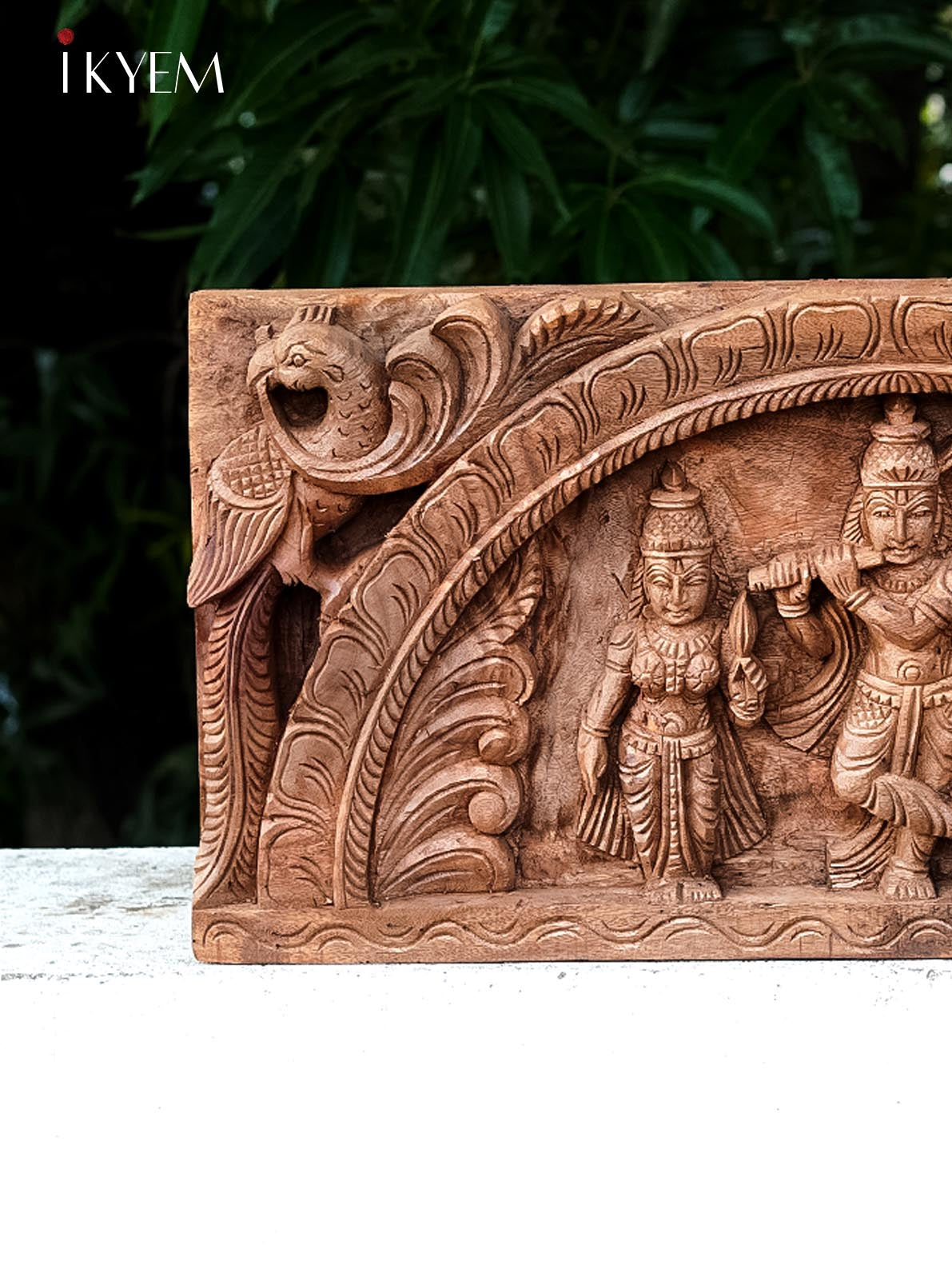 - This exquisitely crafted piece features Lord Krishna with Bama Rukmani, perfect for pooja rooms and as wall decor.