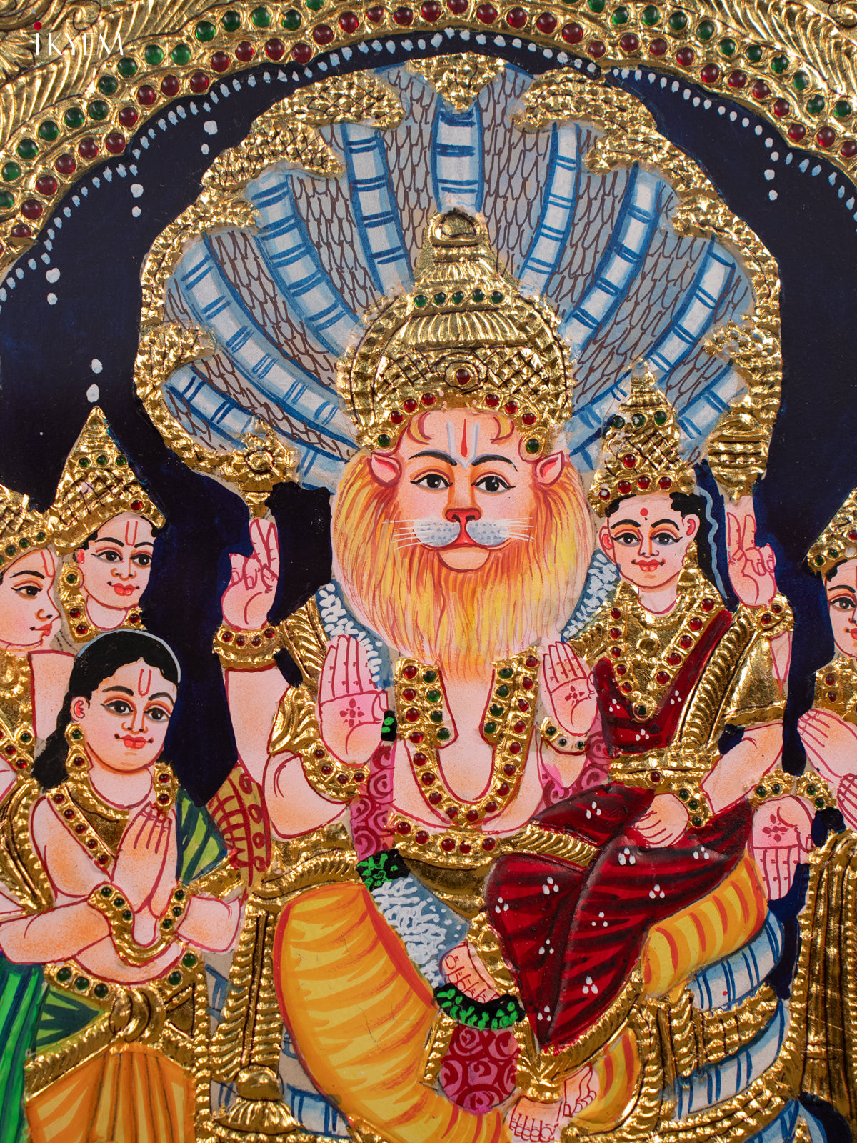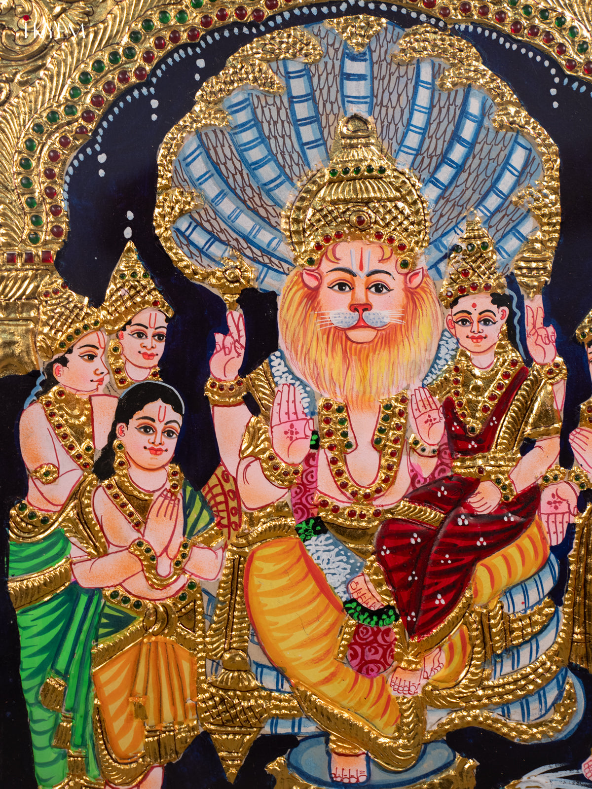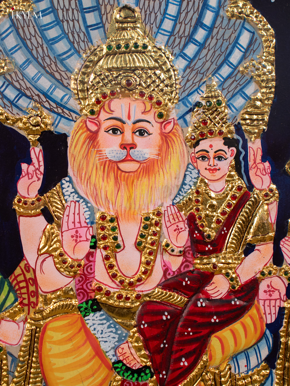 Unique Tanjore Painting Of Lakshmi Narasimhar - KB01161