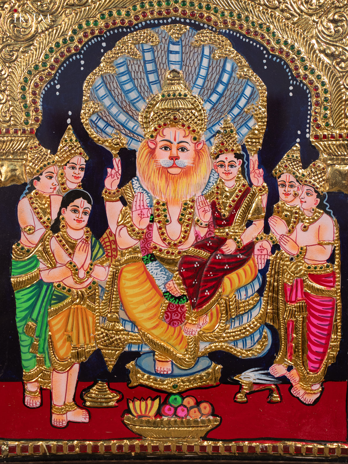 - Enhance the ambiance of your pooja room with our exquisite Lakshmi Narasimar Tanjore Painting (20x24).