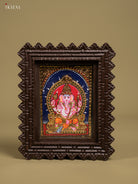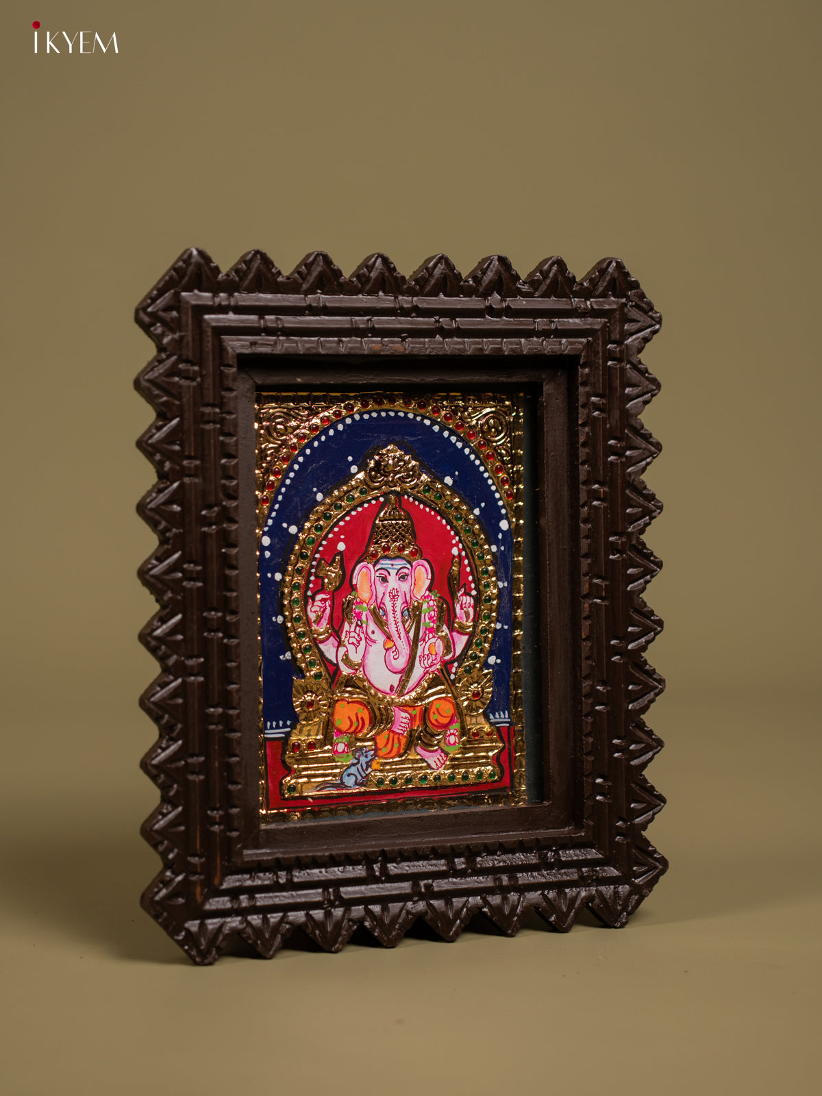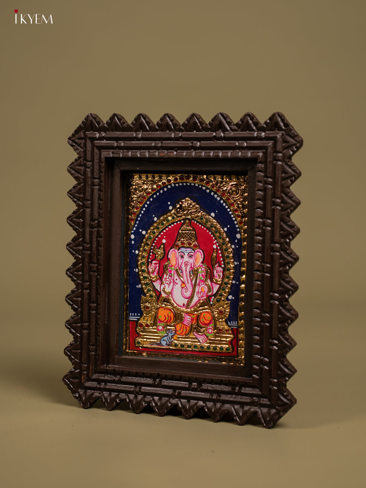 Lord Ganesha Tanjore Painting in Chettinad style Teakwood Frame - KF26142