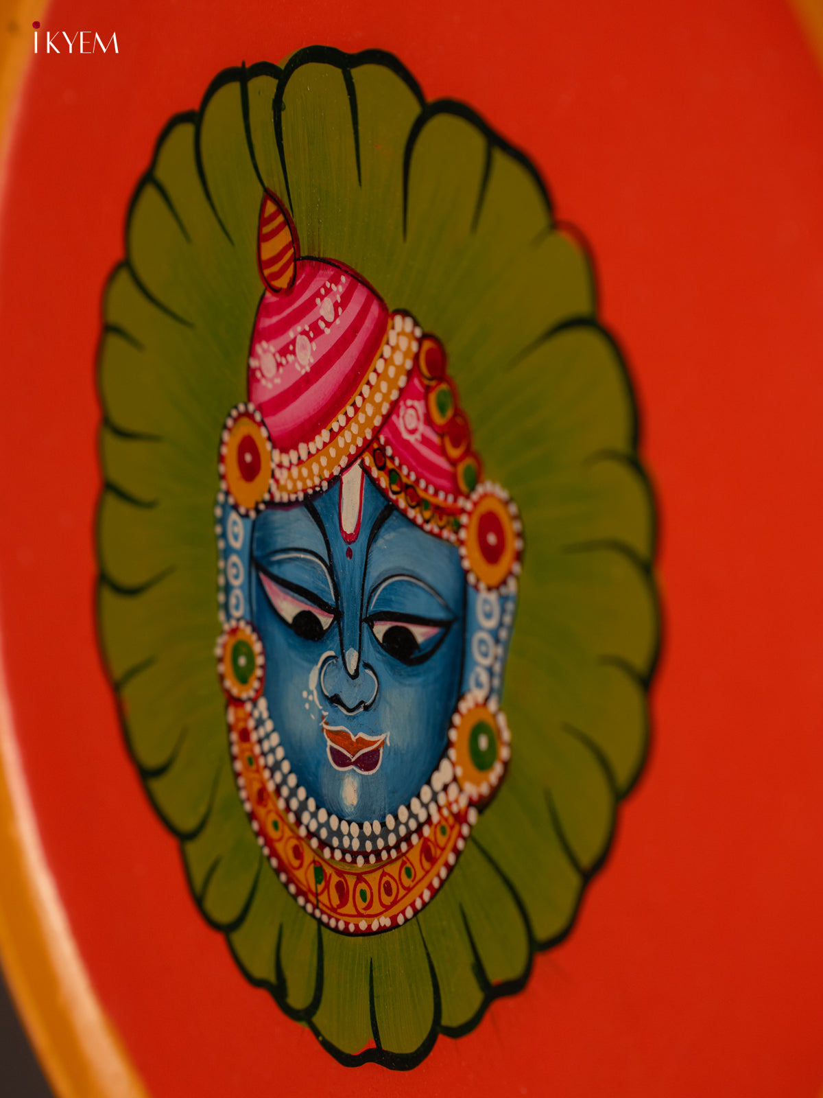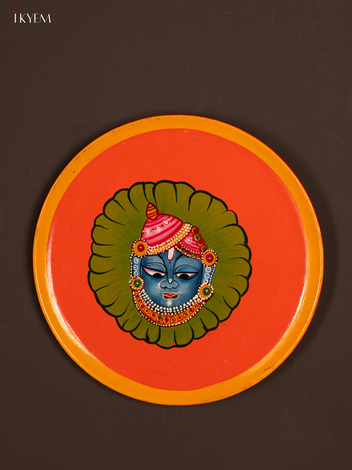 Auspicious Hand-painted Srinath ji Orange Wooden Wall Plate - KG04211