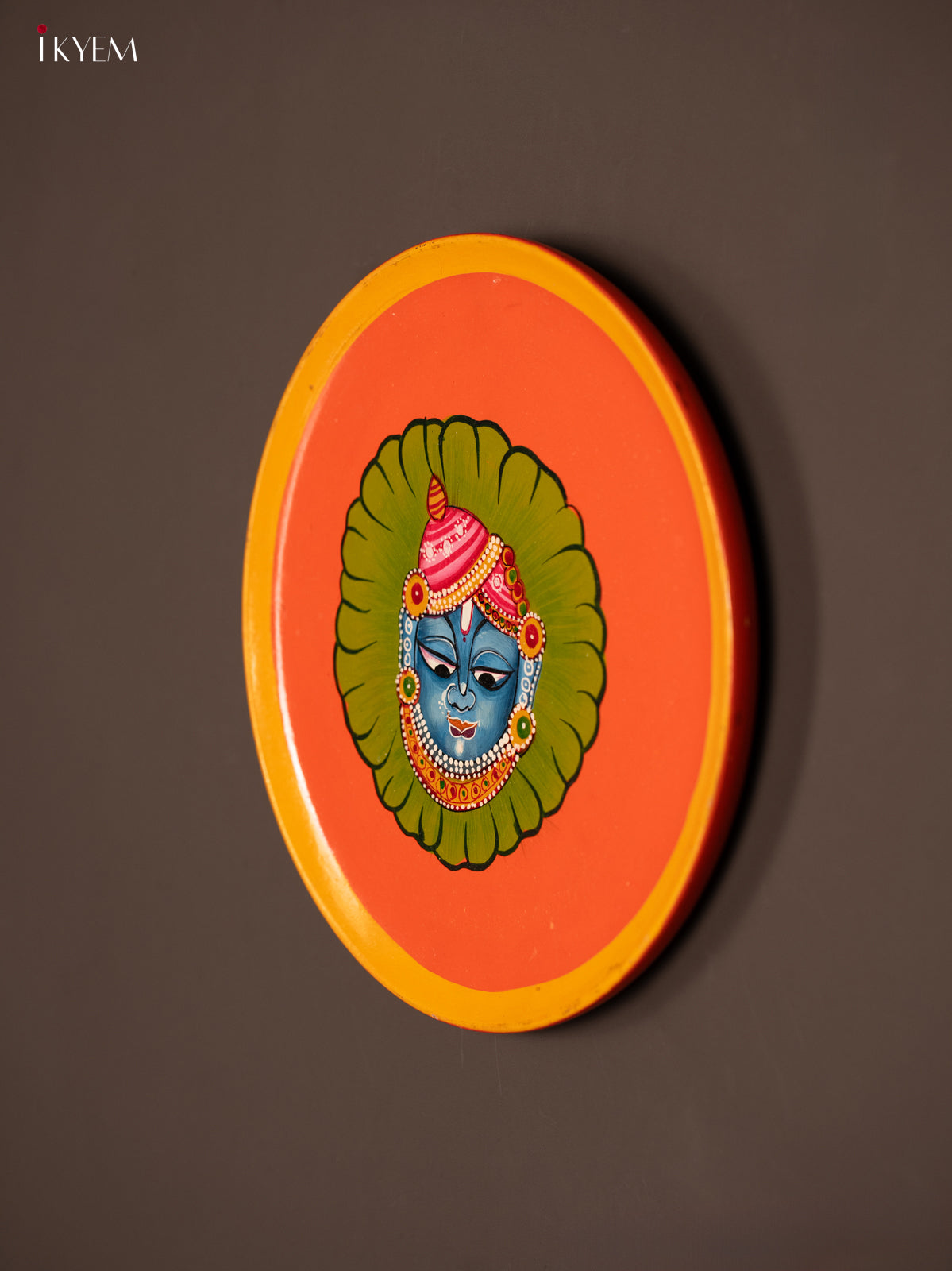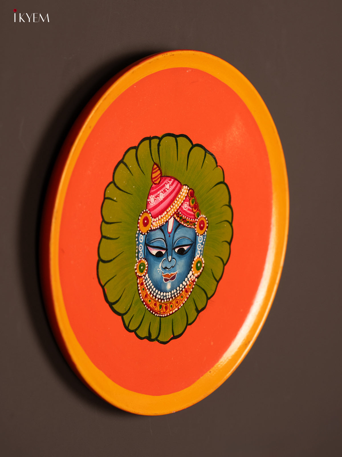 - Enhance your living space with this wooden hand-painted wall hanging plate featuring Srinath Ji in vibrant orange hues.
