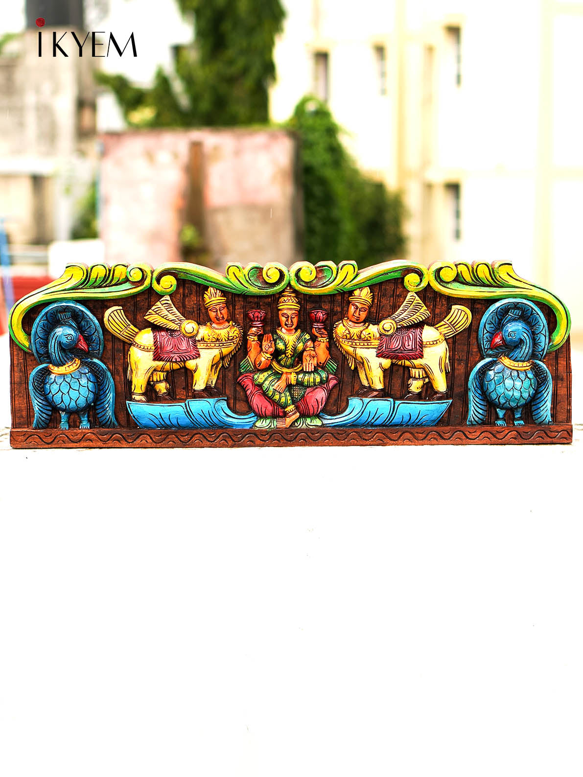 - This Wooden Hand Painted Carved Lakshmi with Kamadhenu Peacock Wall decor is a traditional and stunning addition to any home.