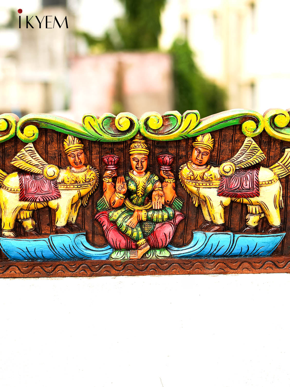 Hand Painted Wooden Carved Lakshmi with Kamadhenu Wall Panel - 4GJ24003