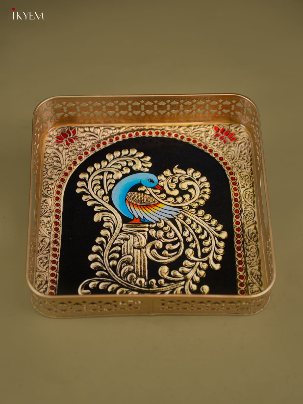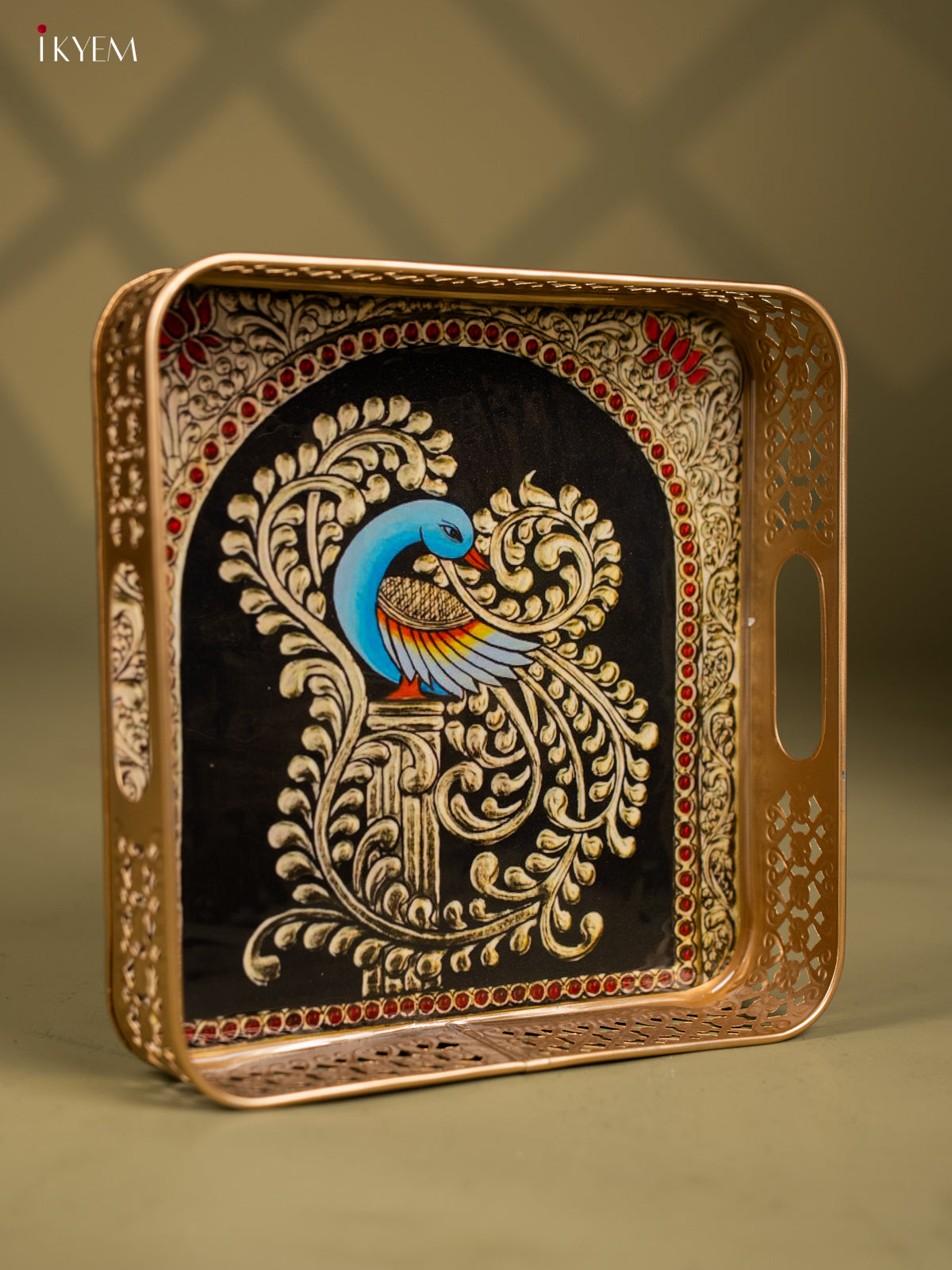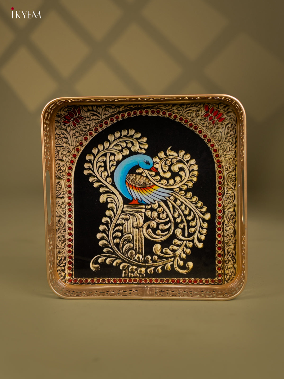 Beautiful Peacock Motif Printed Square Metal Tray - KF25138