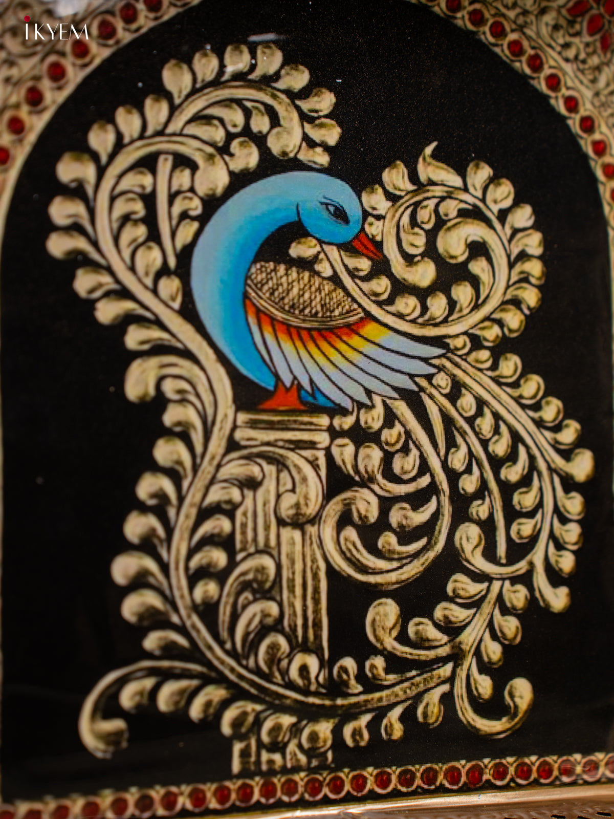 - This 10-inch square metal tray features a traditional Peacock design, perfect for pooja ceremonies and religious offerings.