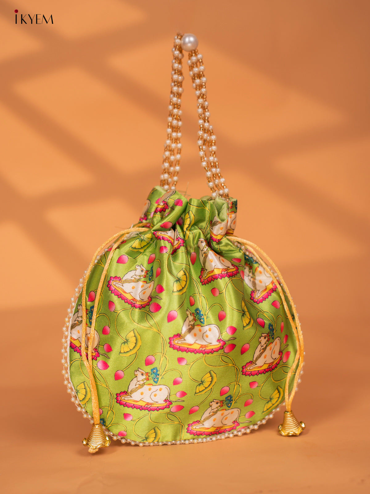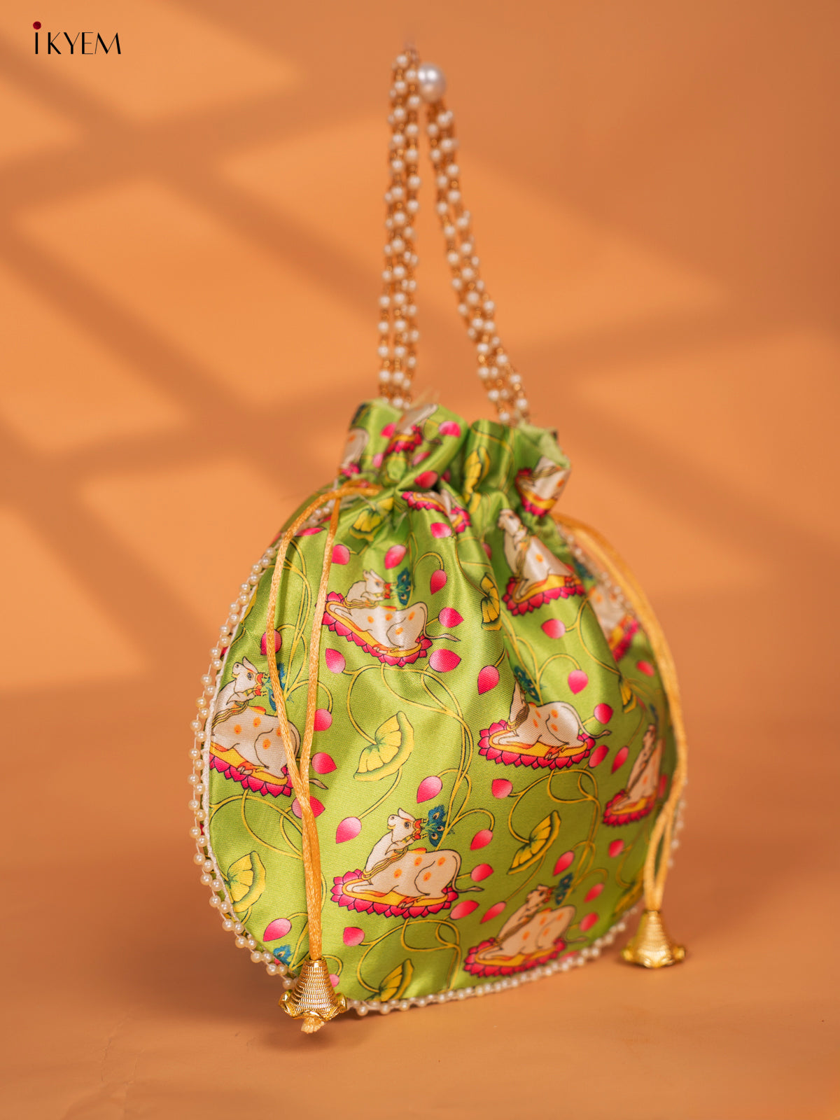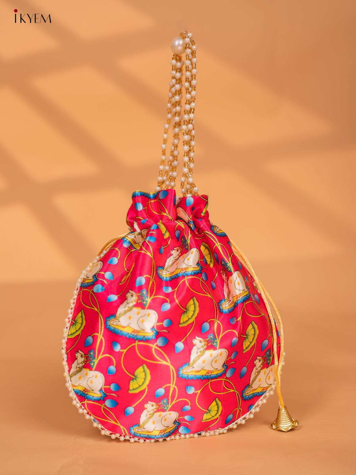 - Discover the beauty and tradition of Pichwai with our Pichwai Printed Potli Bags.