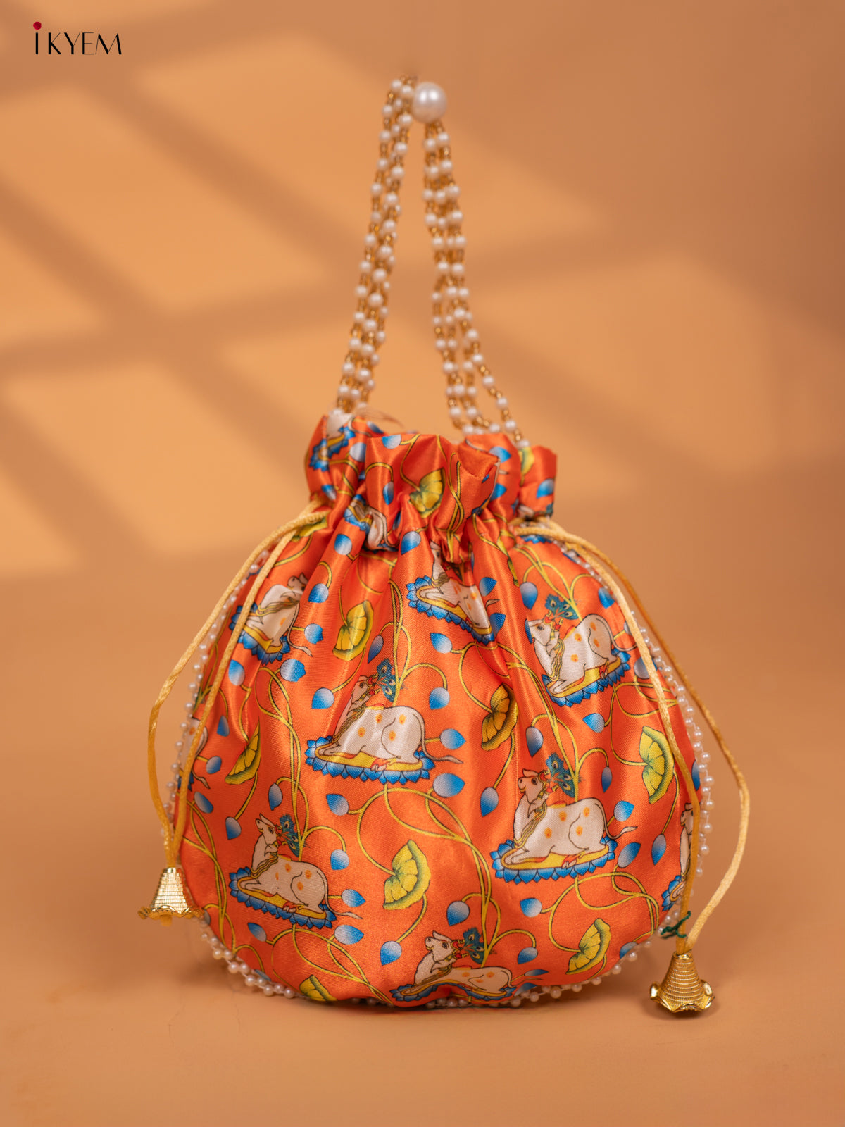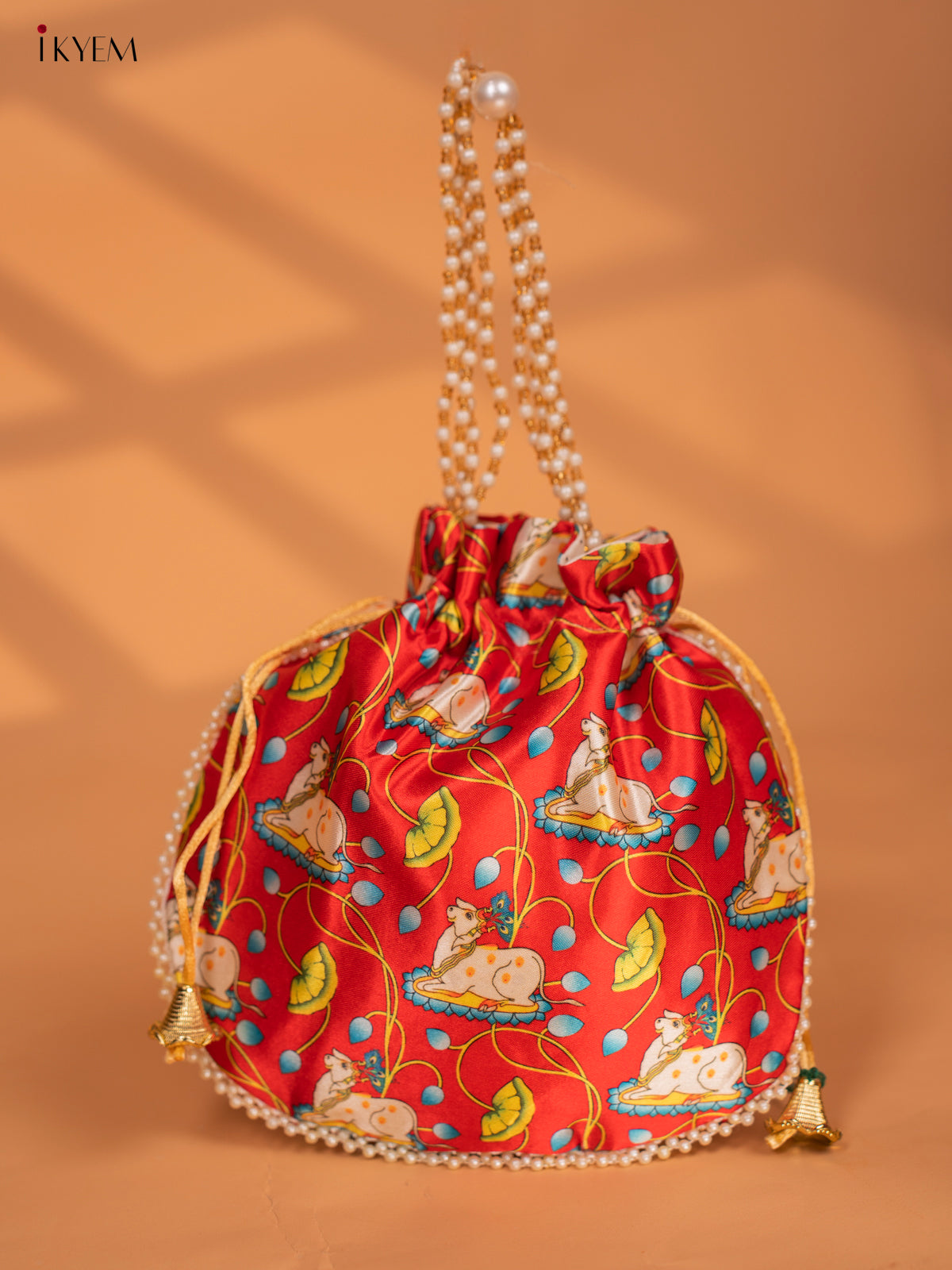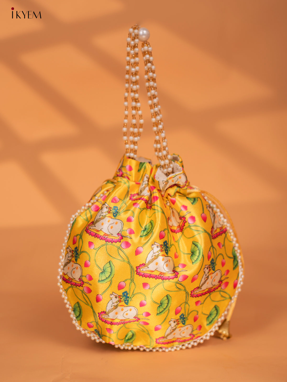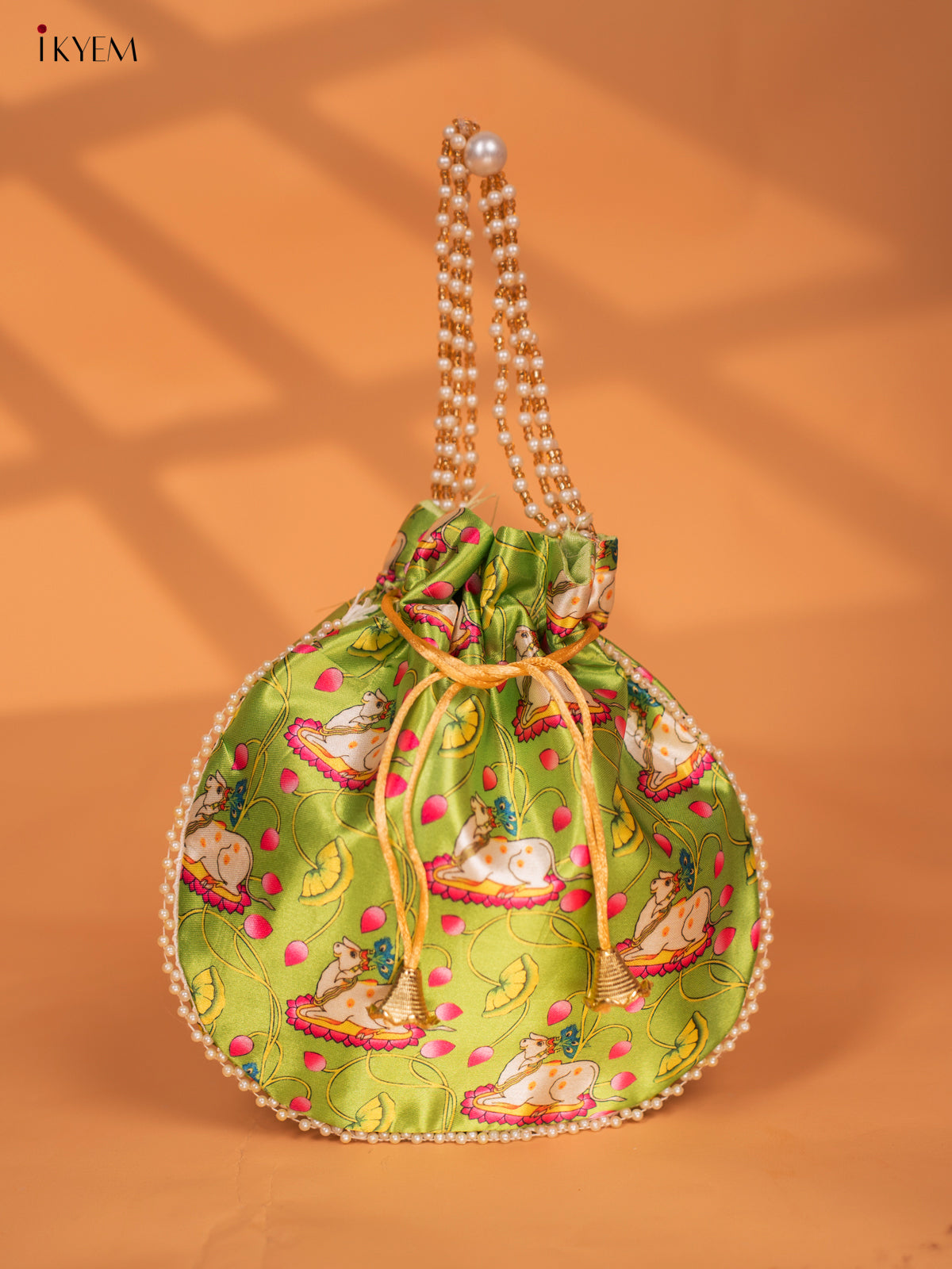 - Discover the beauty and tradition of Pichwai with our Pichwai Printed Potli Bags.
