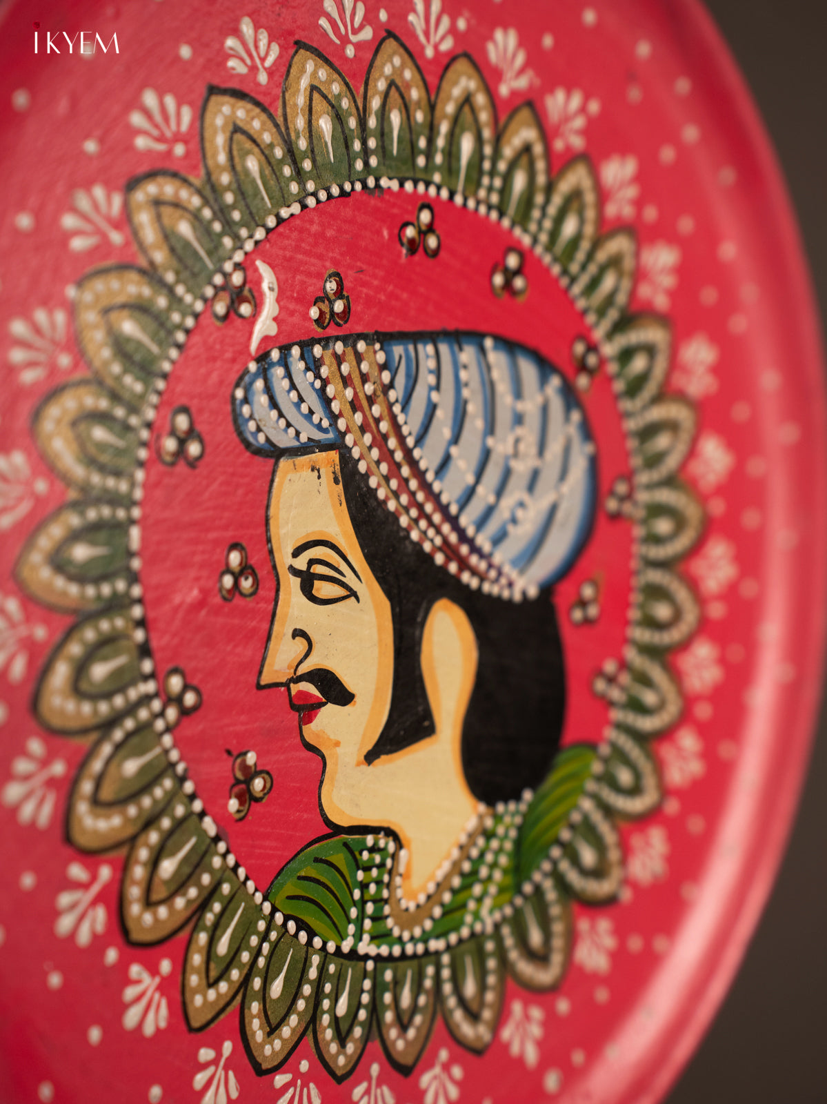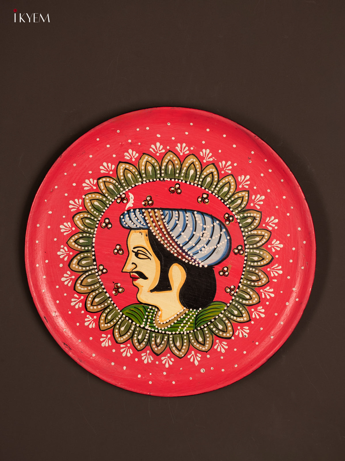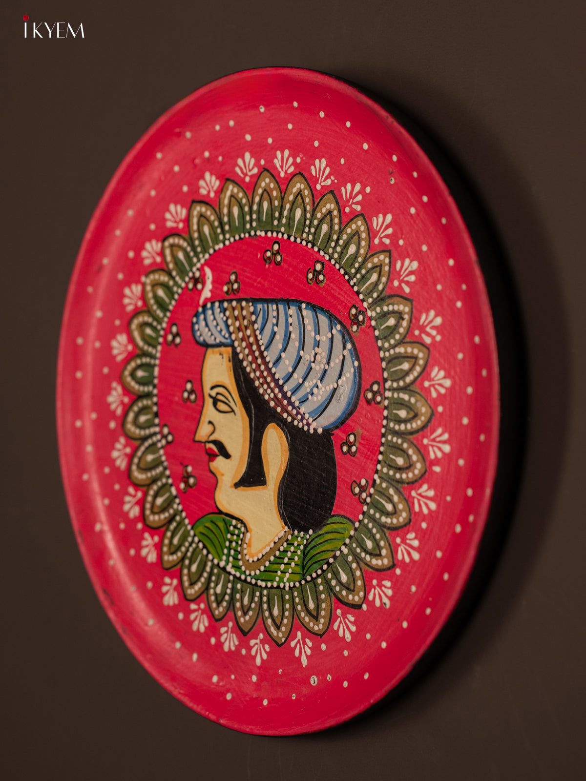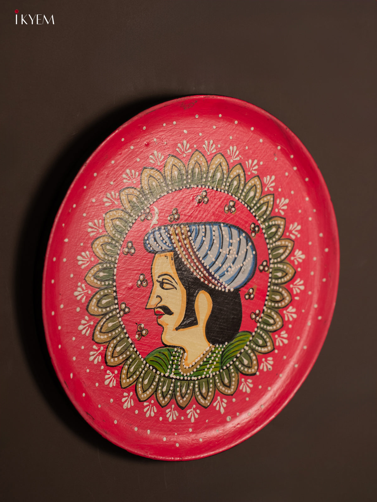 Captivating Raja on Pink Hand-Painted Wooden Wall Plate - KG04174