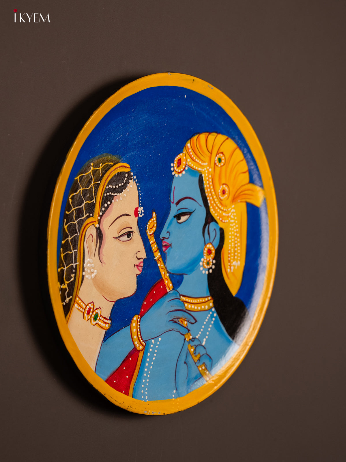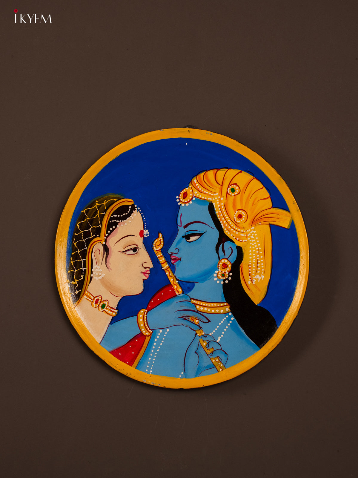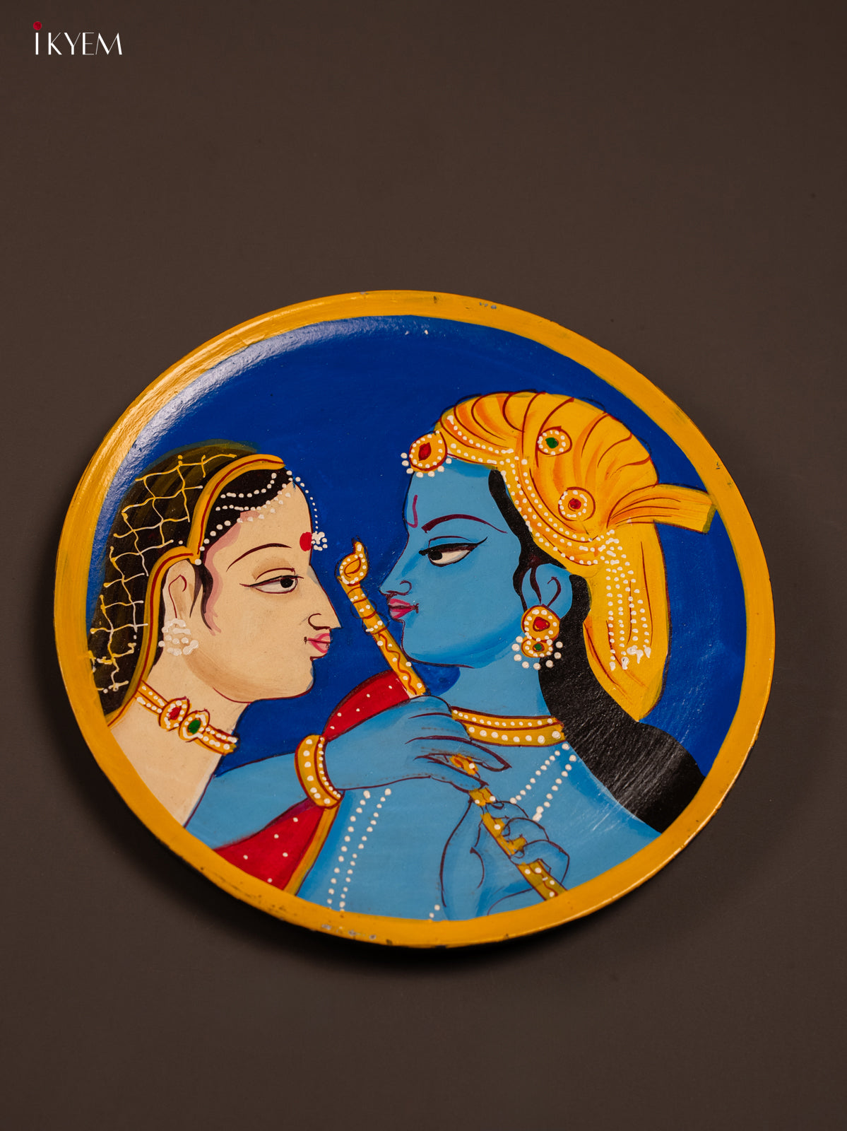 - Introducing our Wooden Wall Hanging Plate, featuring a beautifully Hand Painted Radha & Krishna design.