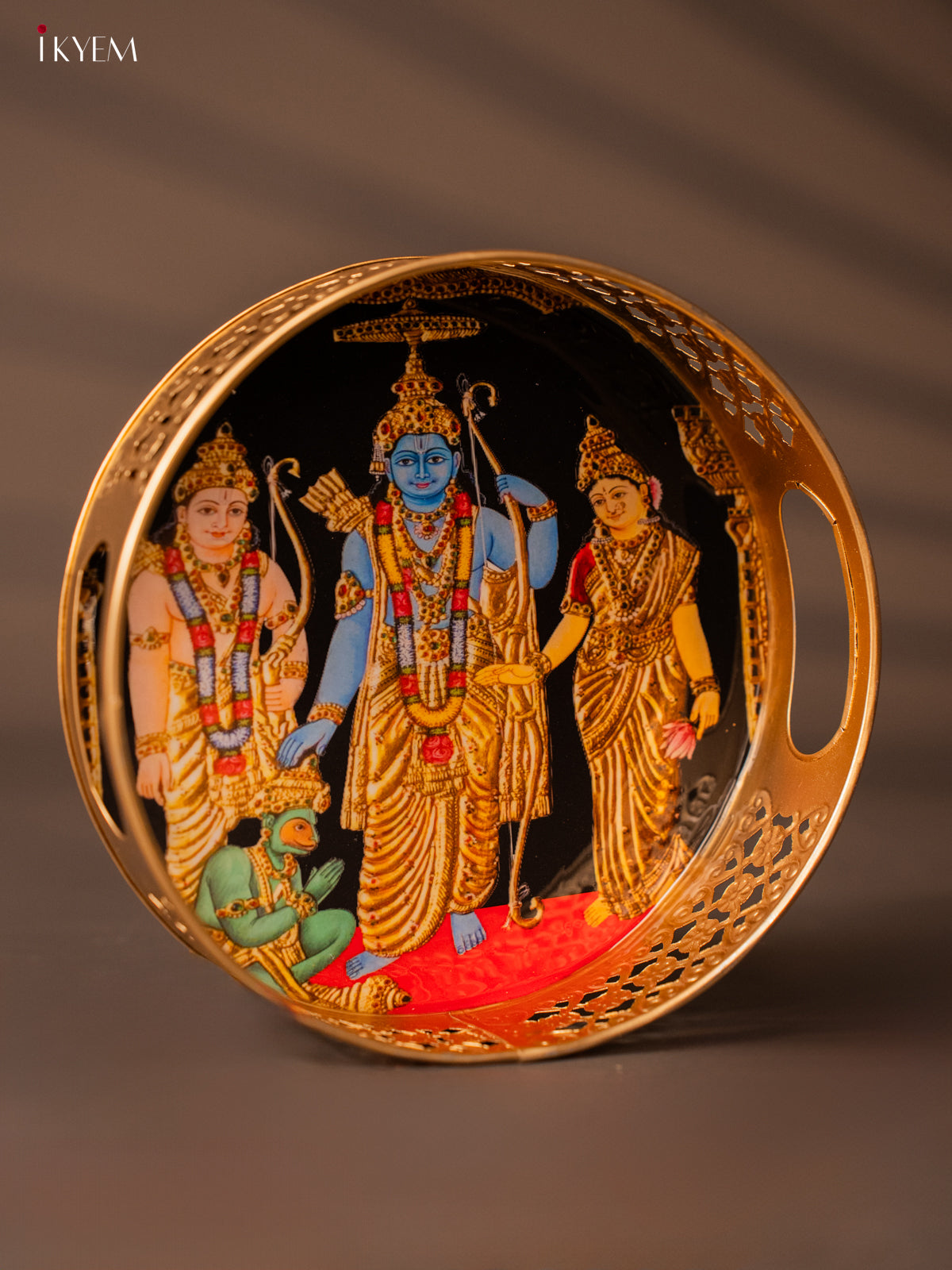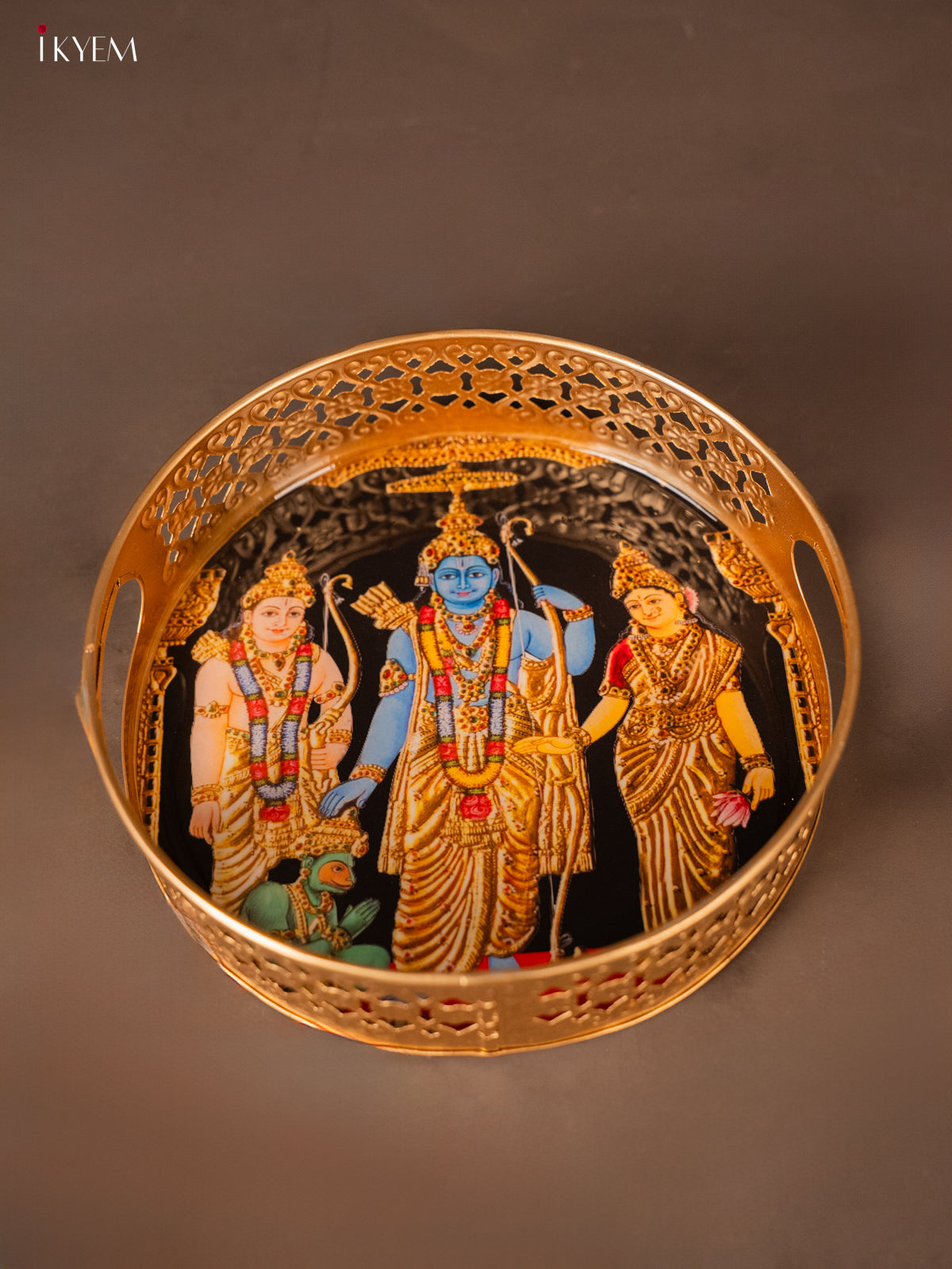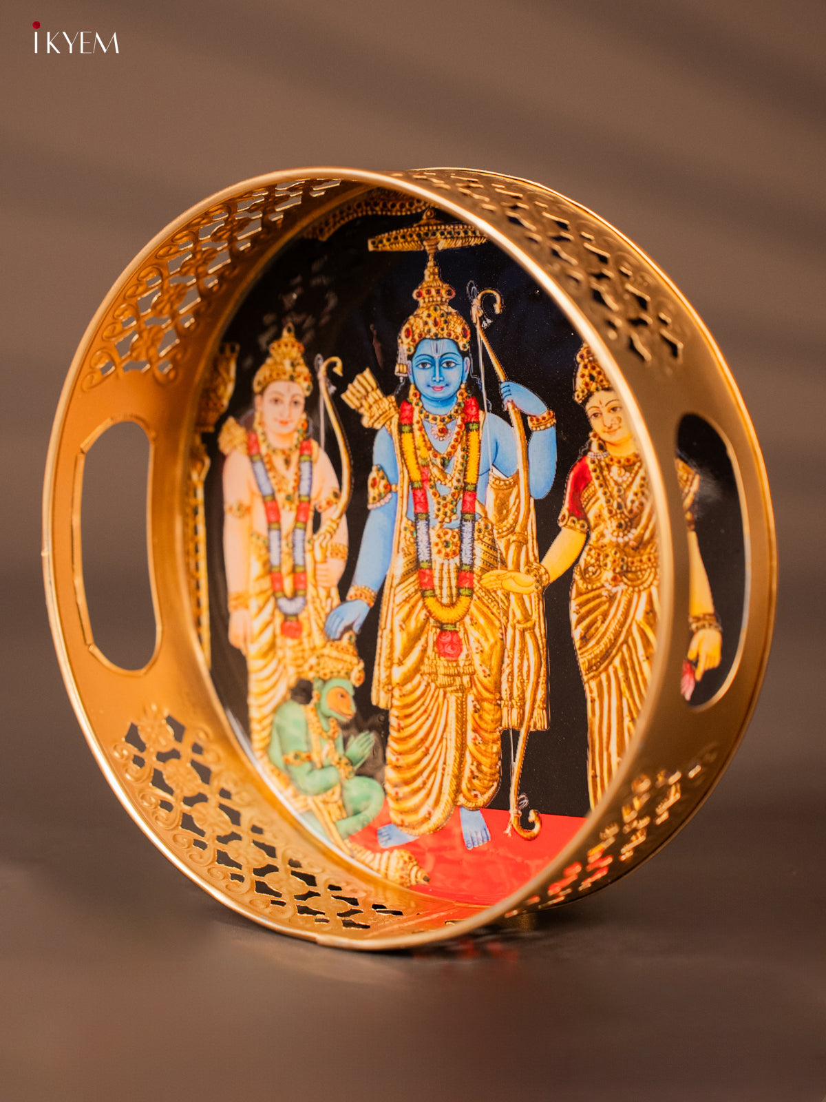 - This 8-inch Metal Digital Tray features a detailed gold depiction of Raman, Seethai, Lakshmanan & Hanuman making it suitable for pooja rituals, return gifts, and decorative purposes.