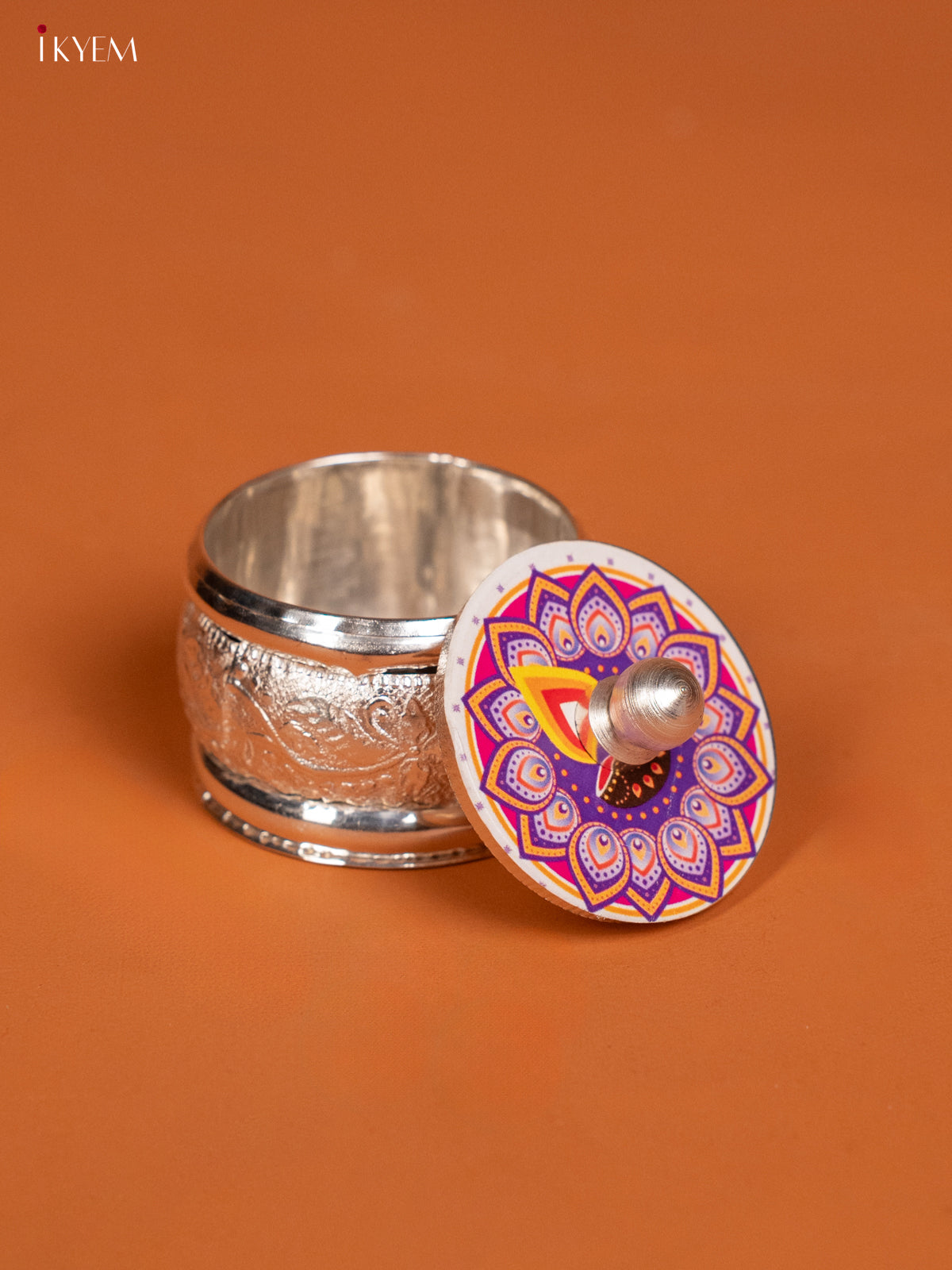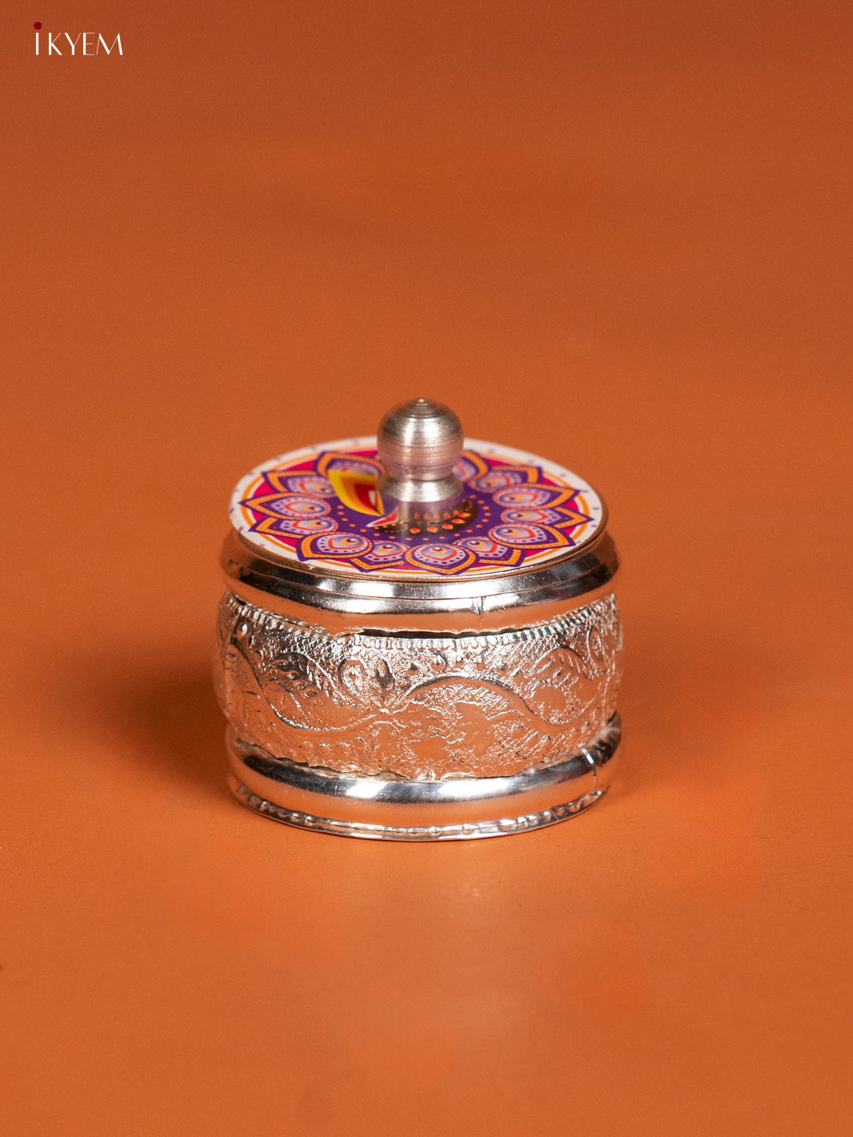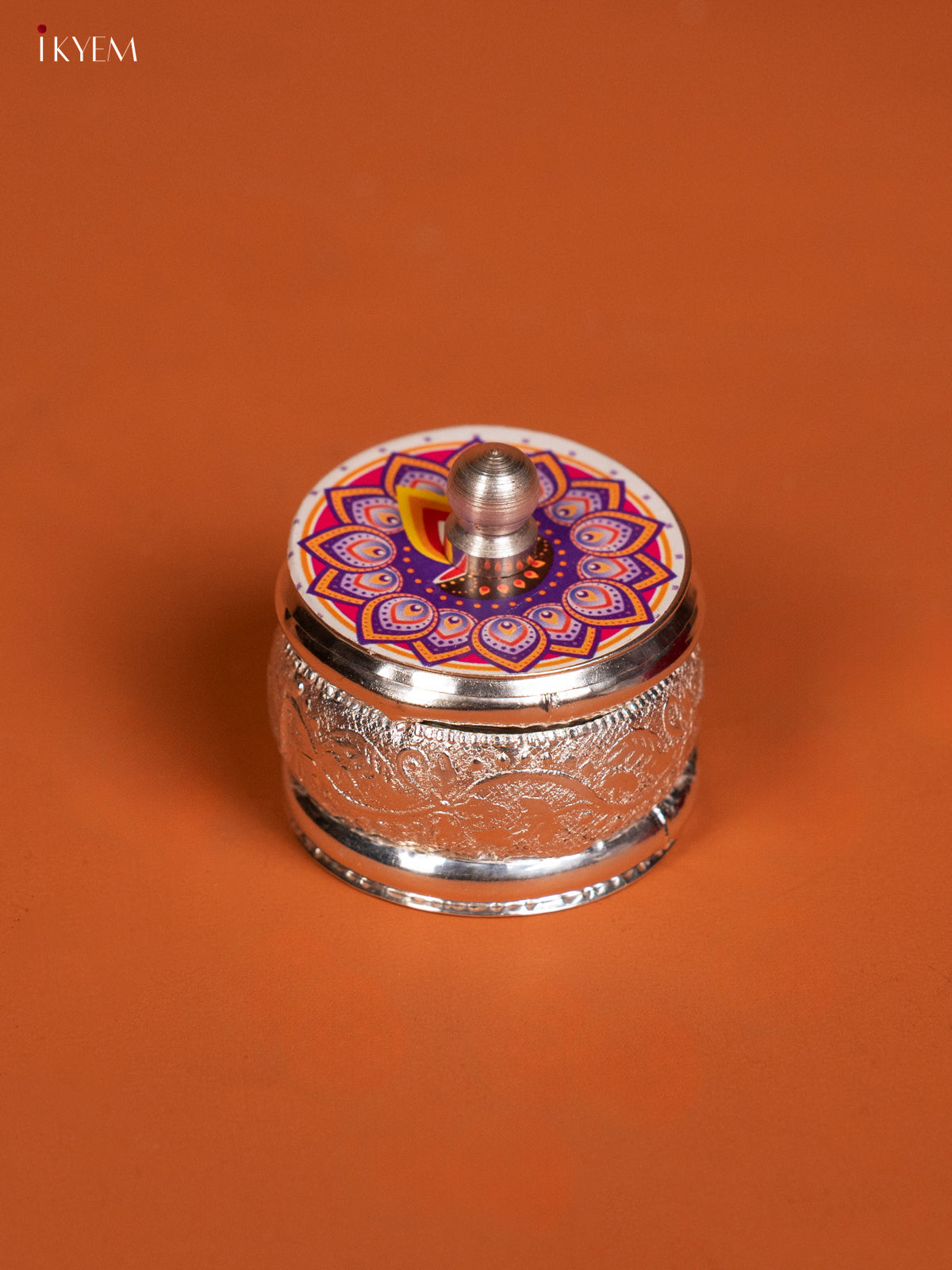 Elegant Rangoli Designed Kumkum Holder in German Silver - KF10240