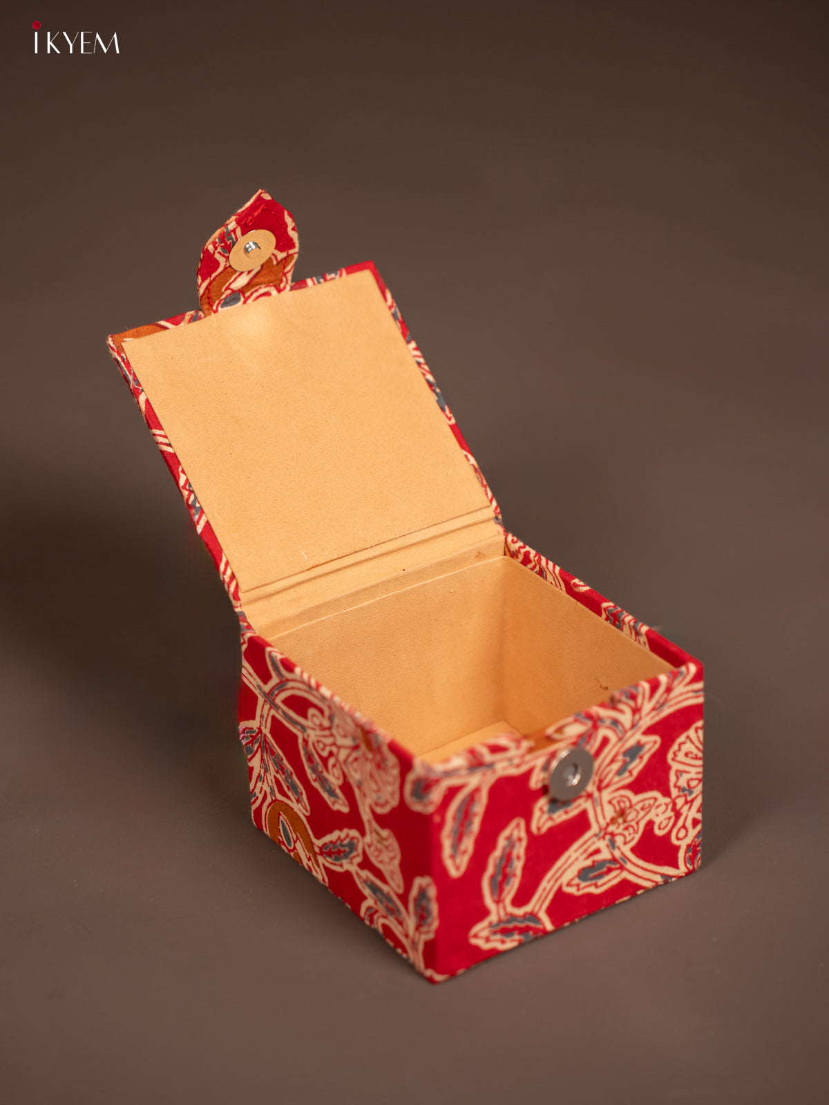 Elegant Red Kalamkari Small Jewelry Box - KE29179