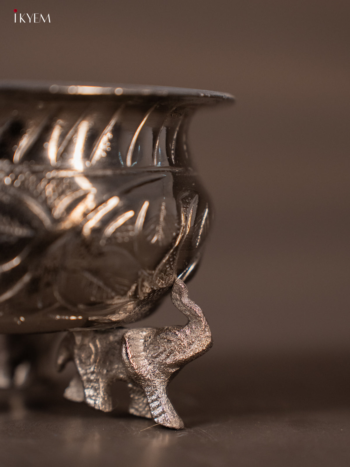 - The Electroplated Silver Coating Elephant Urli (4×4) is a beautifully crafted piece suitable for pooja ceremonies, home decor, or as elegant return gifts.