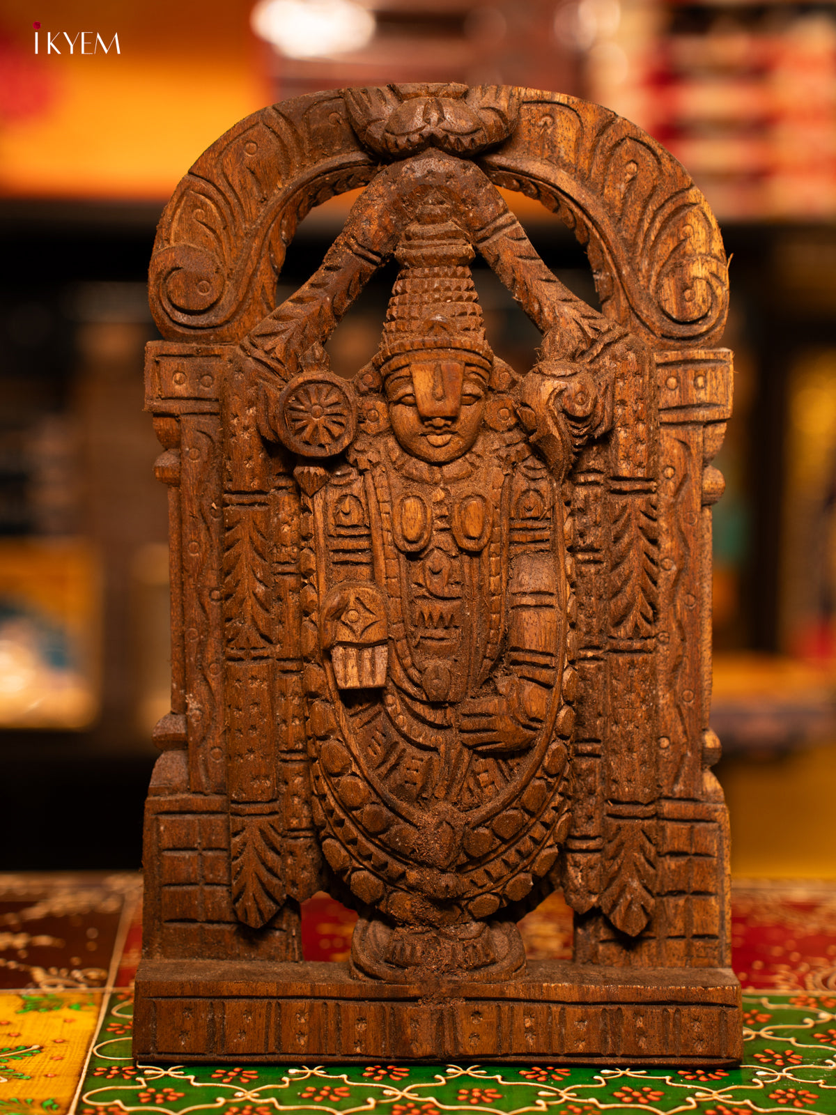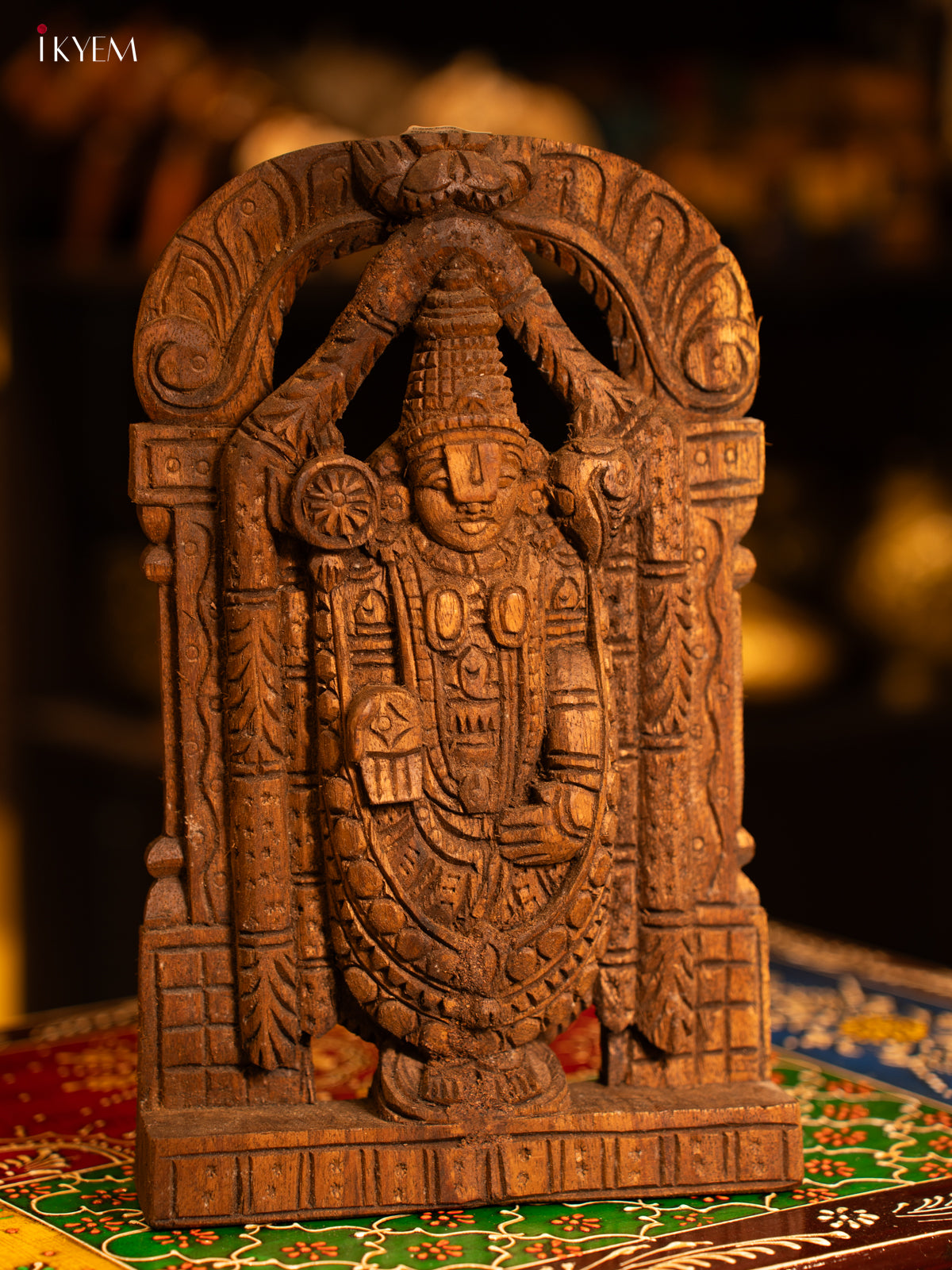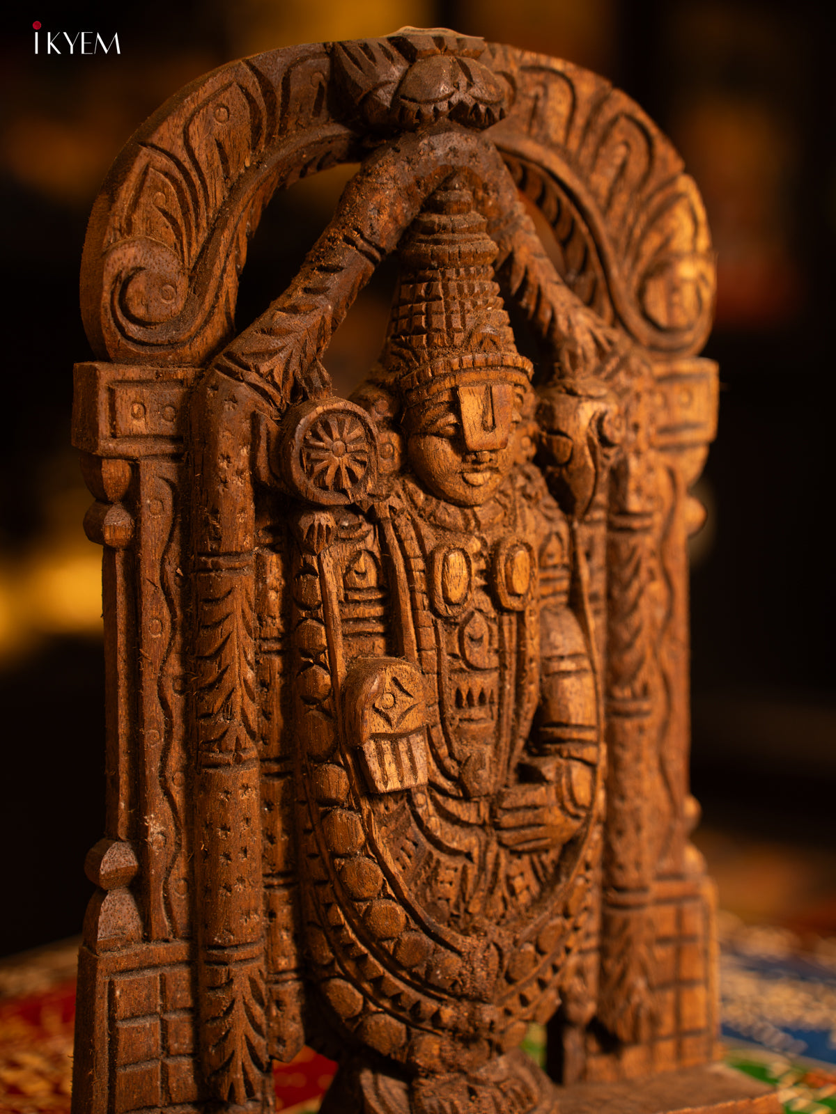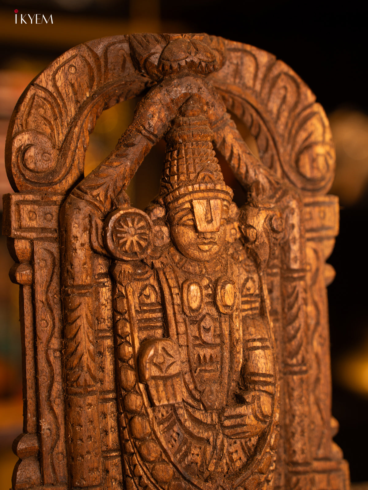 - Expertly hand carved from wood, this Tirupati Balaji Wooden panel showcases intricate details and devout symbolism.