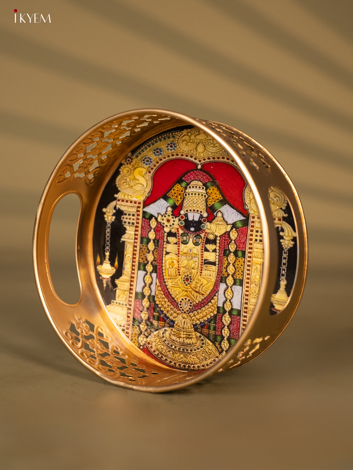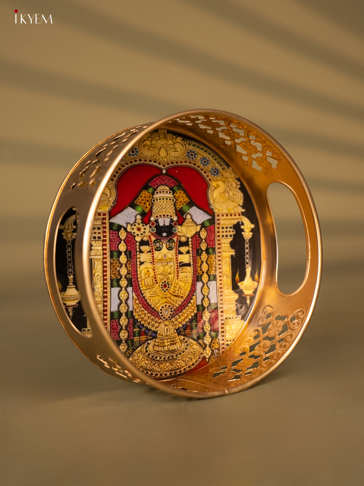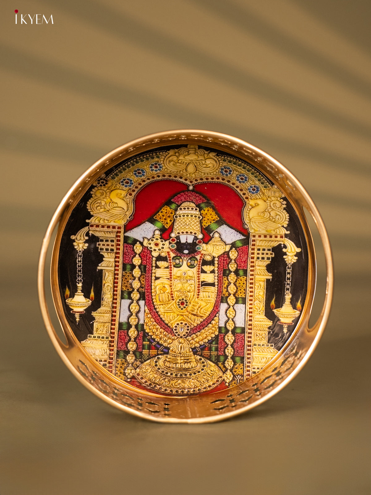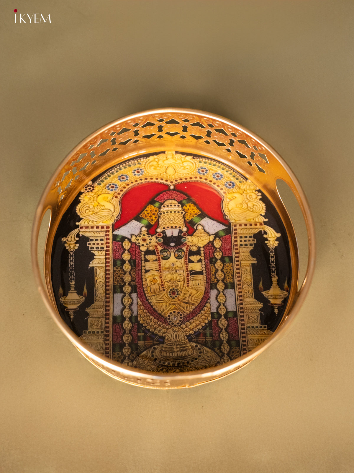 - This 6-inch metal tray features a detailed digital print of Tirupati Balaji highlighted by a rich red background.