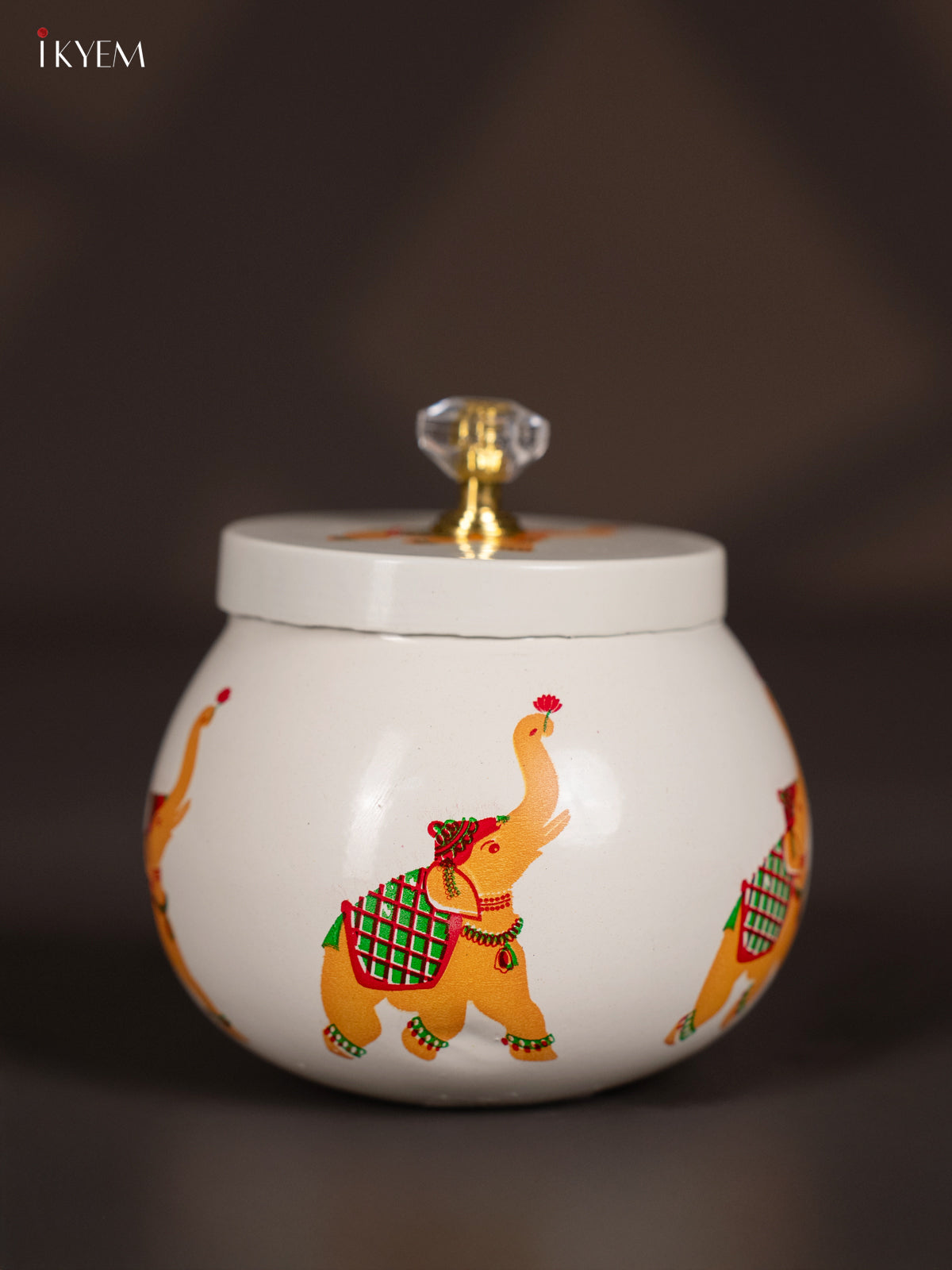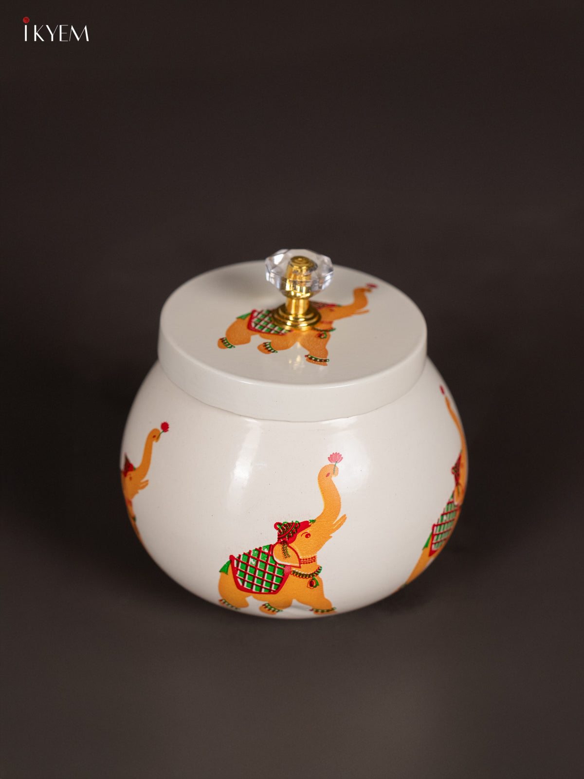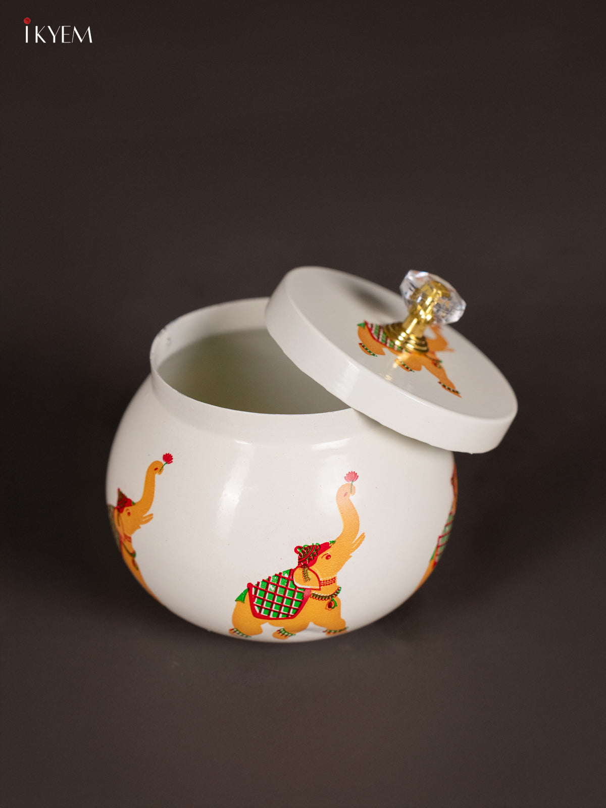 Graceful Elephant Printed White Dry Fruit Jar with Lid (3.5 Inches) - KI21209