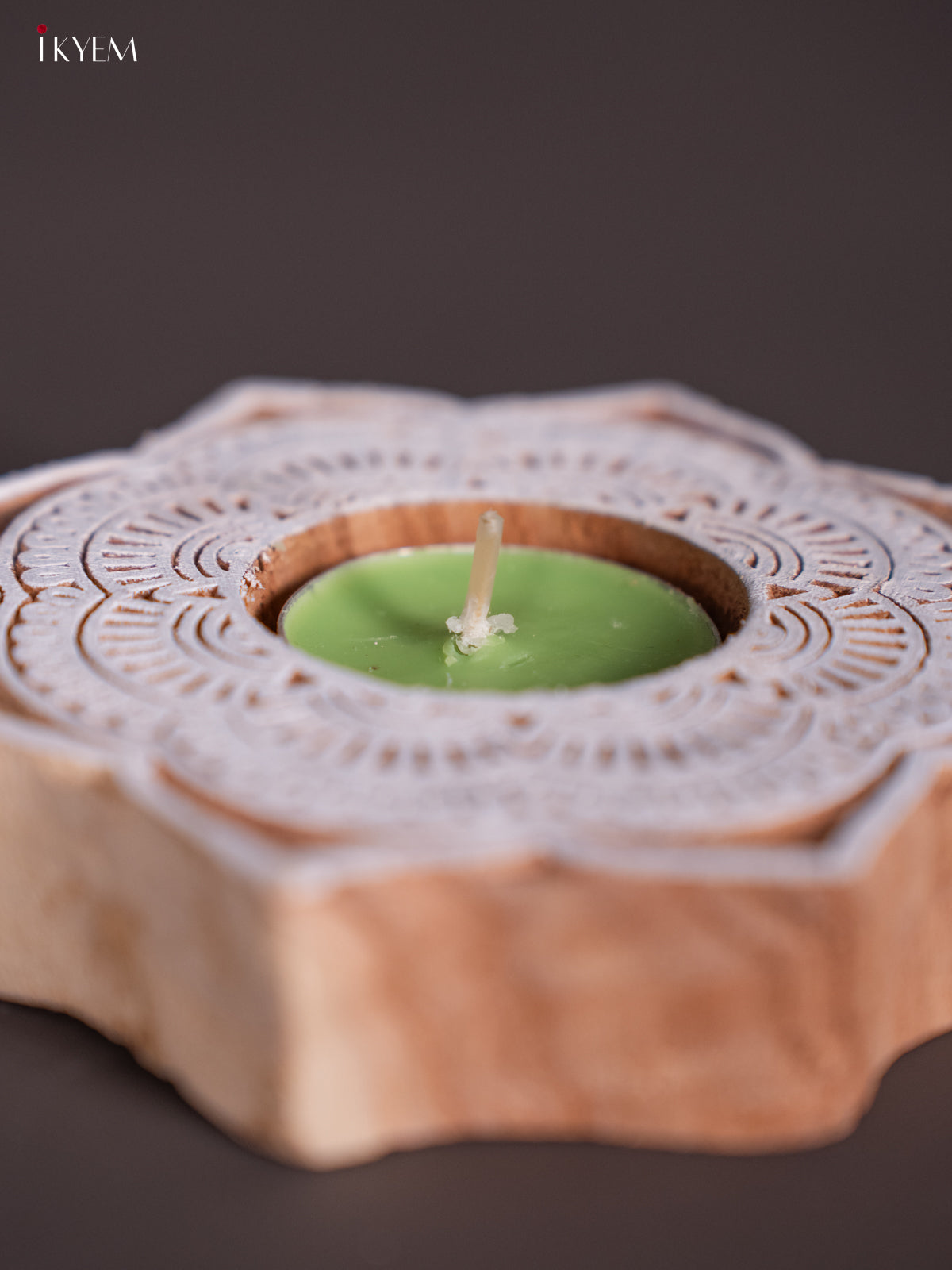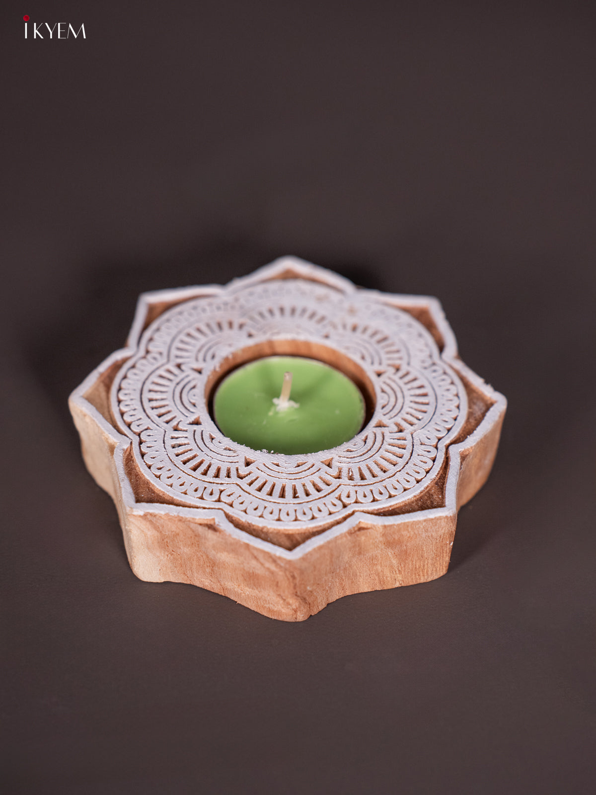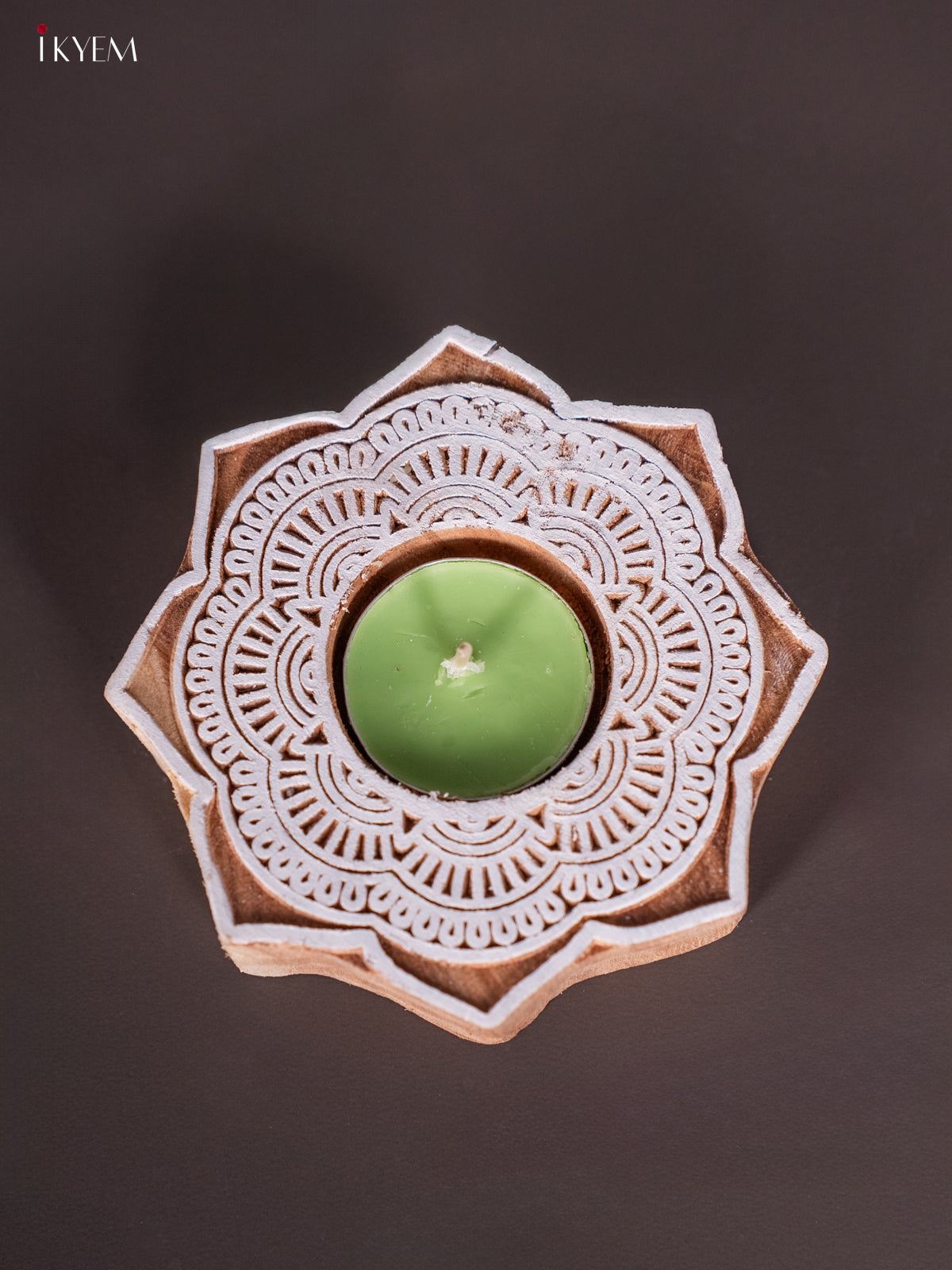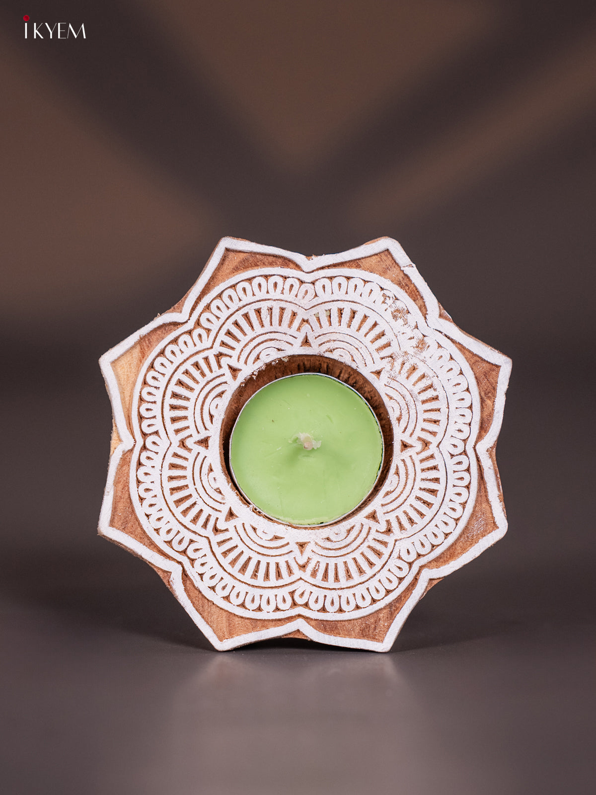 Chic Kolam Shaped Wooden T light Candle Holders - KI12130