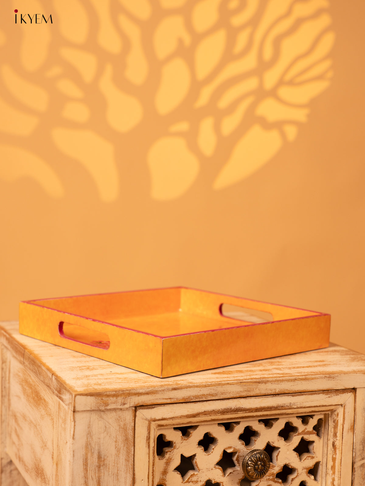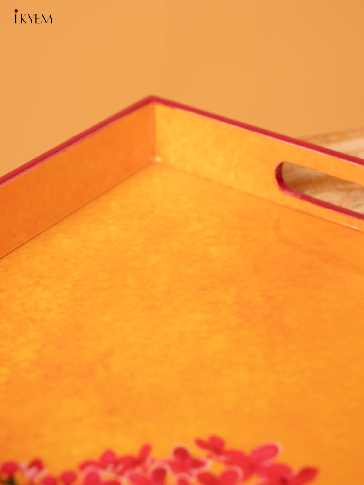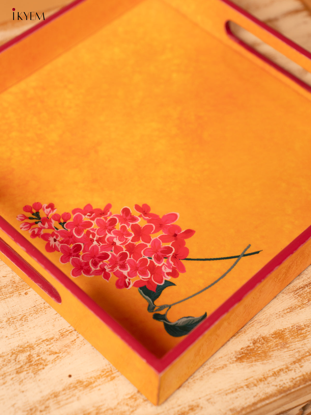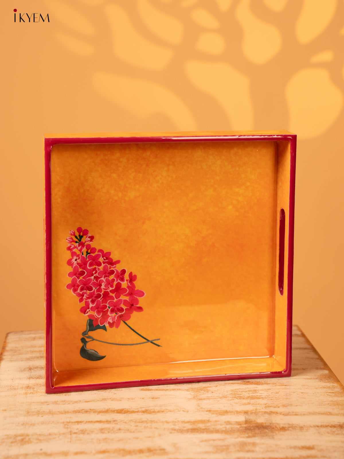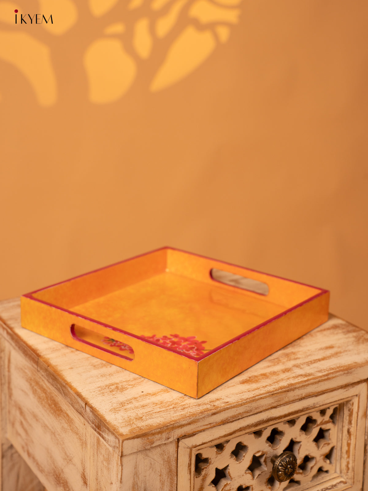 Yellow Floral Printed Square Wooden Tray (10x10) - KL03116