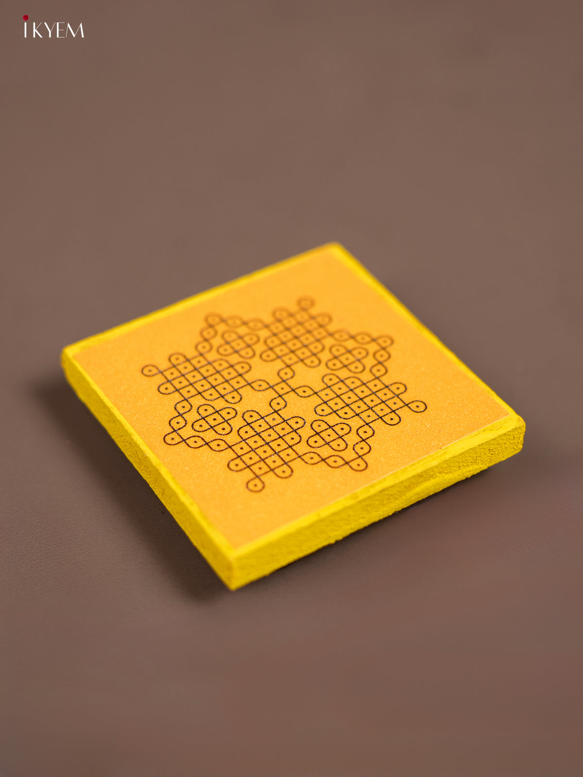 Yellow Kolam Printed Wooden Manai - KE29146