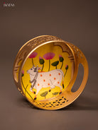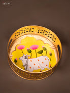 Yellow Pichwai Printed Metal Tray With Cow & Lotus Print - KF19127