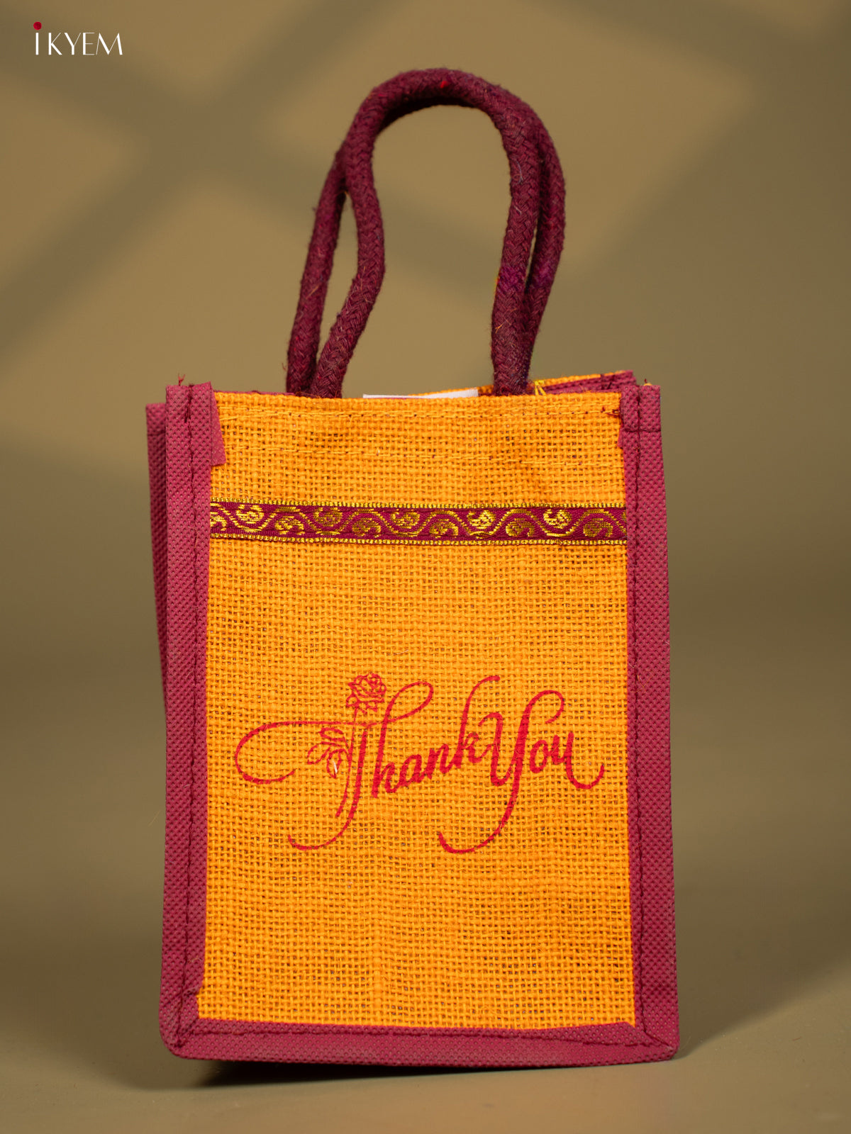 Elegant Yellow "Thank You" Printed Jute Bag - KG08127